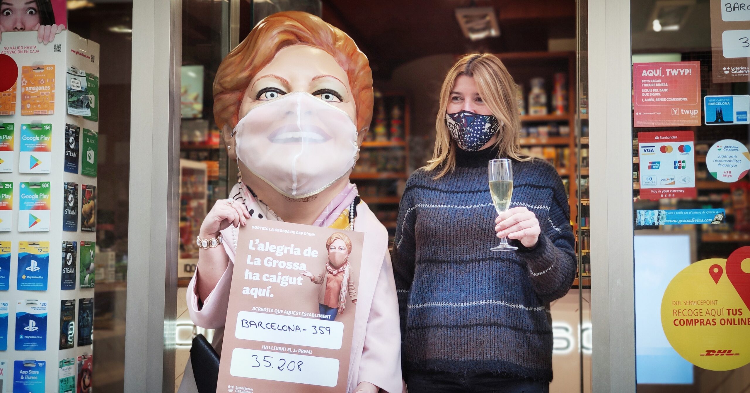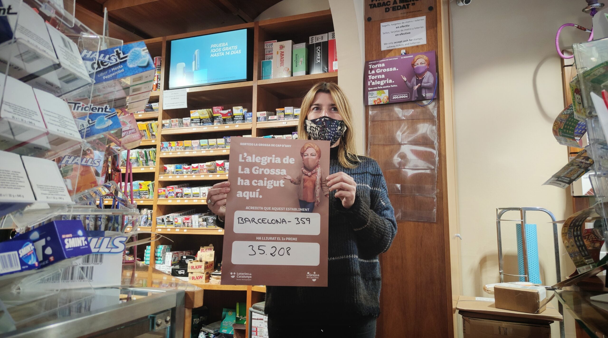 L’estanc de la vila de Gràcia que ha venut el primer premi de la Grossa de Cap d’Any 2020 és una festa. No para de sonar el telèfon i la propietària de l’establiment, Maria Àngels Morata, se’n fa creus de la sort que li ha arribat l’últim dia de l’any. “Acabo de donar el primer premi de la Grossa, nen!”, diu a un veí que entra al local, situat al carrer Terol número 41.