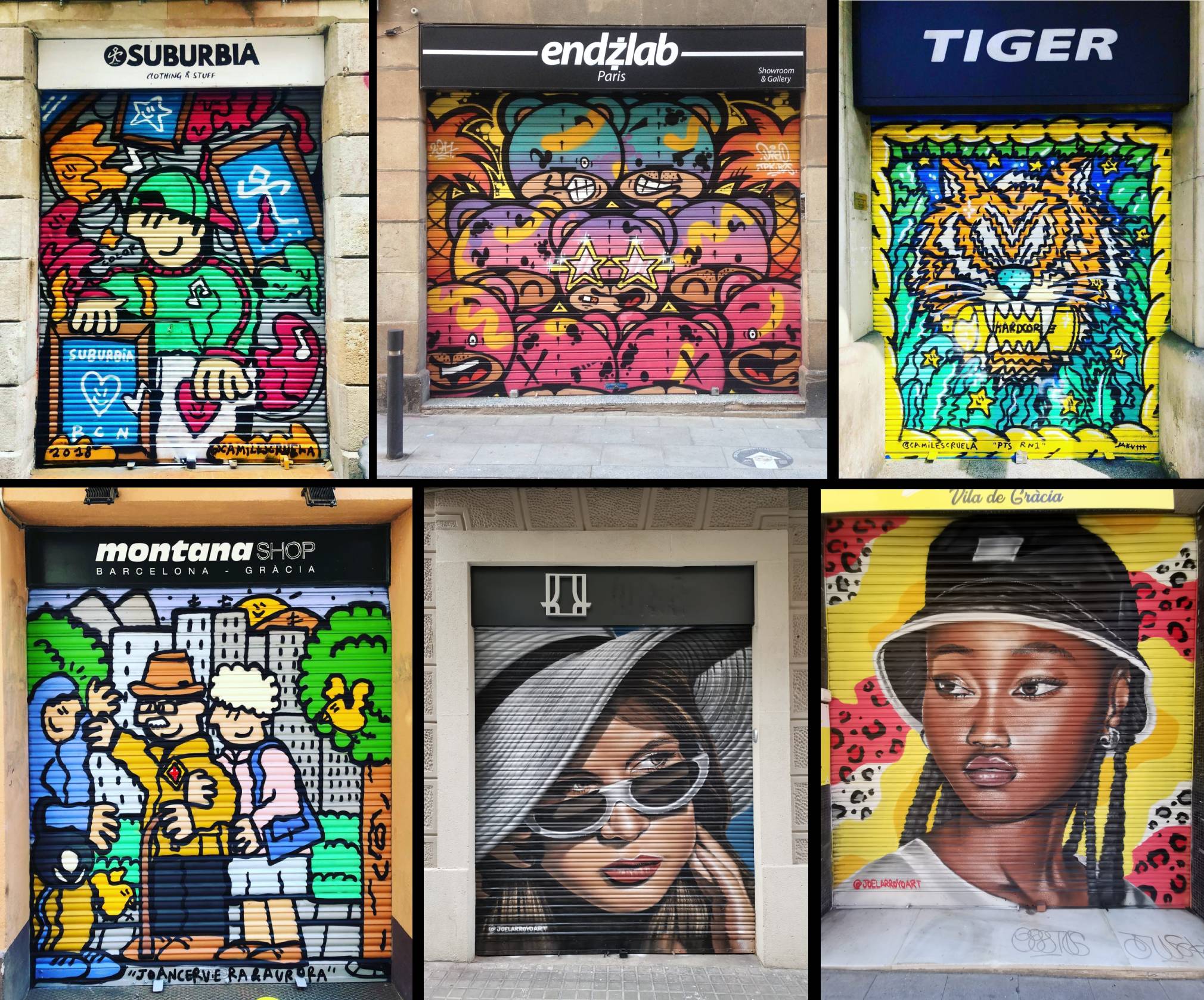 La pandèmia ha deixat una estesa de persianes abaixades a Barcelona, que entristeixen el paisatge quotidià. Per sort, molts comerços aposten des de fa anys per decorar la seva persiana amb creacions artístiques i murals personalitzats, que en temps difícils ens alegren a tots les passejades i animen a comprar al barri. La capital catalana ha destacat durant anys per la potència del seu art urbà i aquest llegat ara ens ajuda a superar la crisi de la Covid-19.