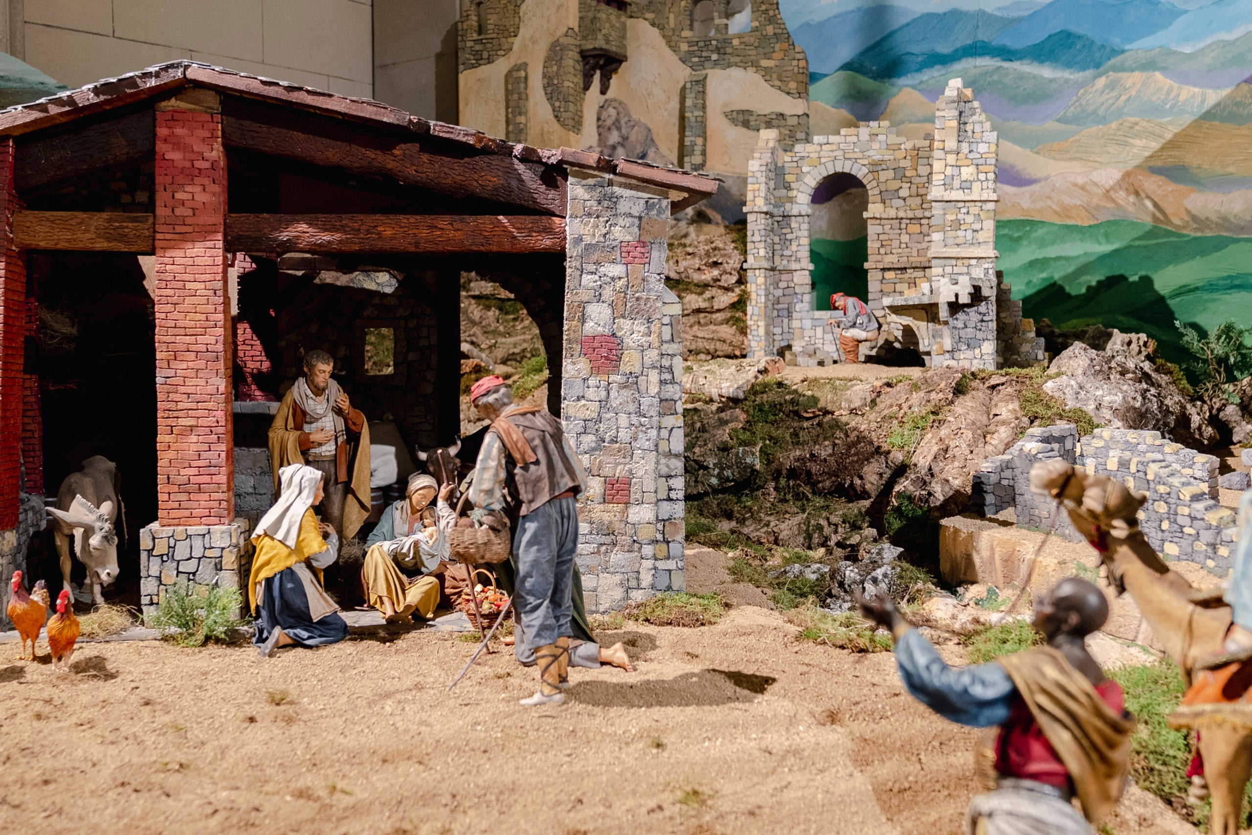 L’associació ha dedicat 6.000 hores de treball al pessebre, que van començar a construir el maig passat. L’edició d’aquest any recrea paisatges de muntanya del Pirineu i del Prepirineu, configurant un entorn naturalista que combina la tradició bíblica amb elements de la geografia catalana. “Hi ha molta feina darrere. S’han de fer cases, teulades, portes i finestres, les muntanyes… És un disseny molt divers, més que res perquè hi ha moltes cases de diferents pobles, adaptades a la realitat del pessebre. L’avantatge d’un pessebre és que l’artista té dret a canviar-ho tot”, comenta Porta.