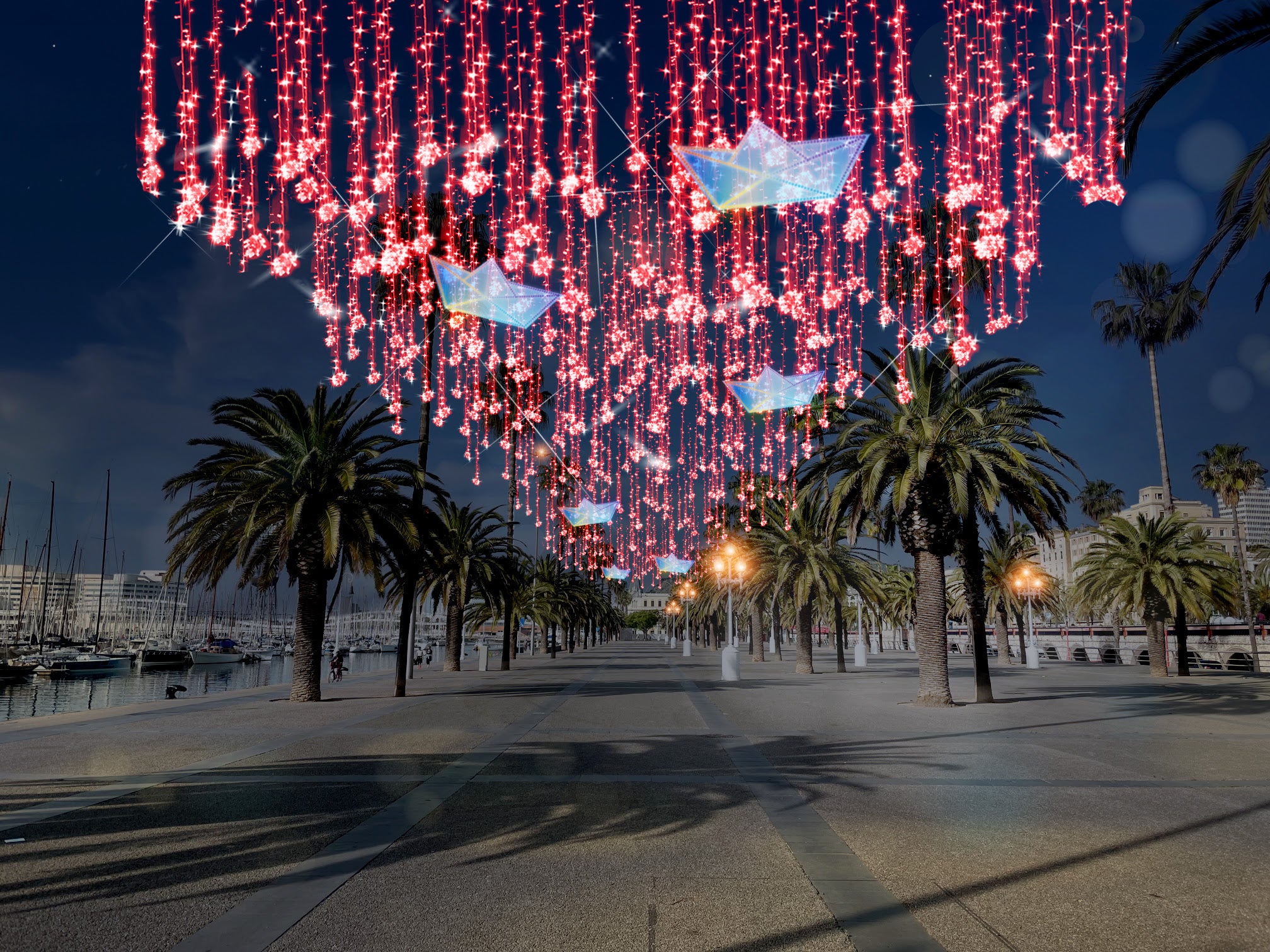 Segons Calvet, el moll de la Fusta es convertirà durant tres setmanes en “un espai de trobada que enforteixi la relació entre el port i la ciutat i fomentar la cultura i el patrimoni marítim entre la ciutadania”. Més de 85.000 llums led ompliran el Port Vell d’esperit nadalenc. Una espectacular il·luminació zenital acompanyarà els visitants al llarg de moll i, juntament amb una bola de Nadal transitable, seran els elements centrals de la fira, que cada vespre oferirà un espectacle de llums.