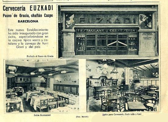 La cerveseria-restaurant Euzkadi la va obrir l’any 1932 de la mà d’Esteve Sala i Canadell, un dels empresaris capdavanters del negoci de la restauració a la Barcelona de l’època. Situat al els baixos de la Casa Pons a la cantonada del Passeig de Gràcia amb Casp, era un establiment inspirat en les tabernes del País Basc i en la que es servien plats de la cuina basca. Es va fer molt conegut pel llenguado Euskadi, un plat que visualment presentava els colors de la ikurriña, el blanc per part de llenguado, el verd per part de les mongetes i el vermell per part del pebrot.