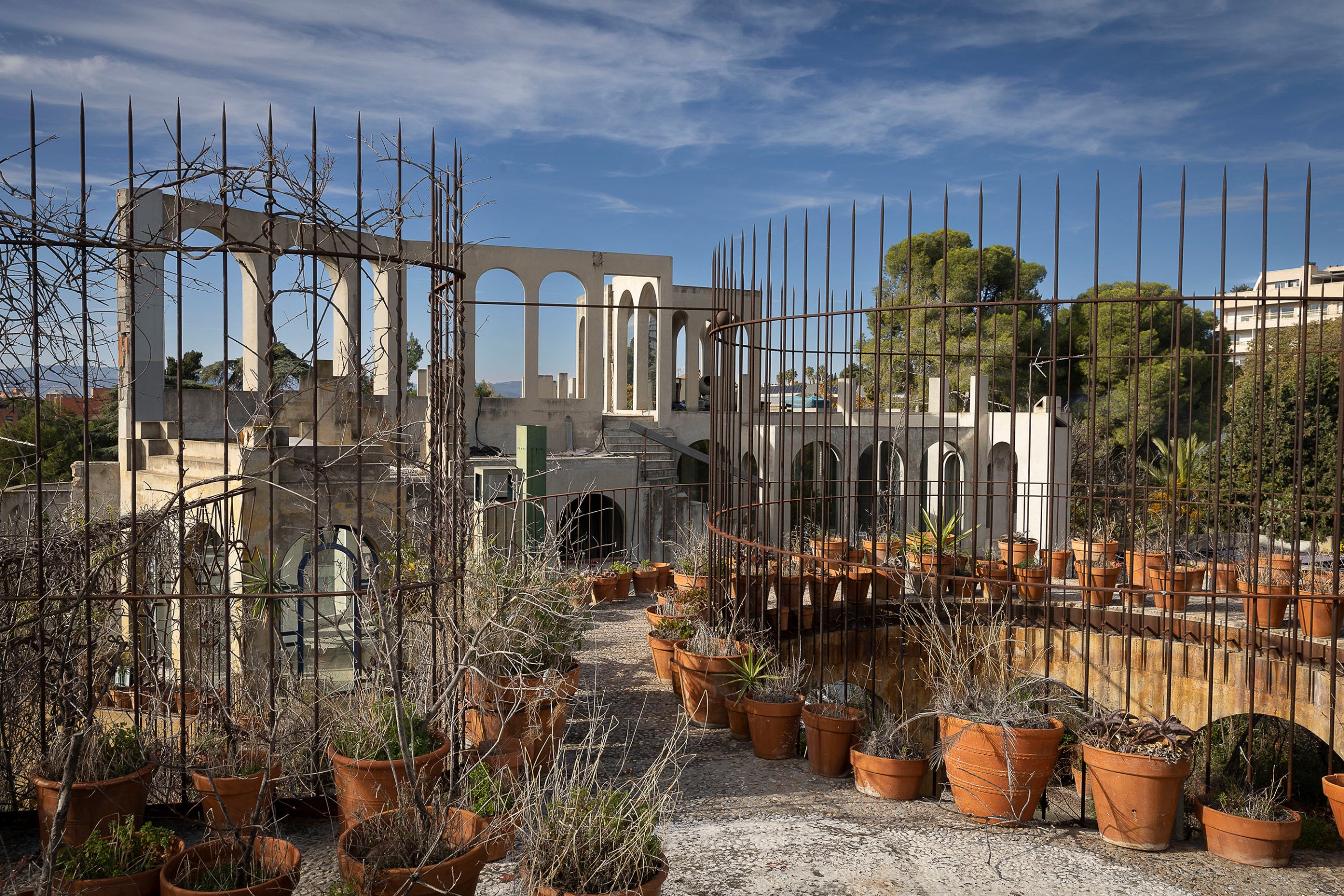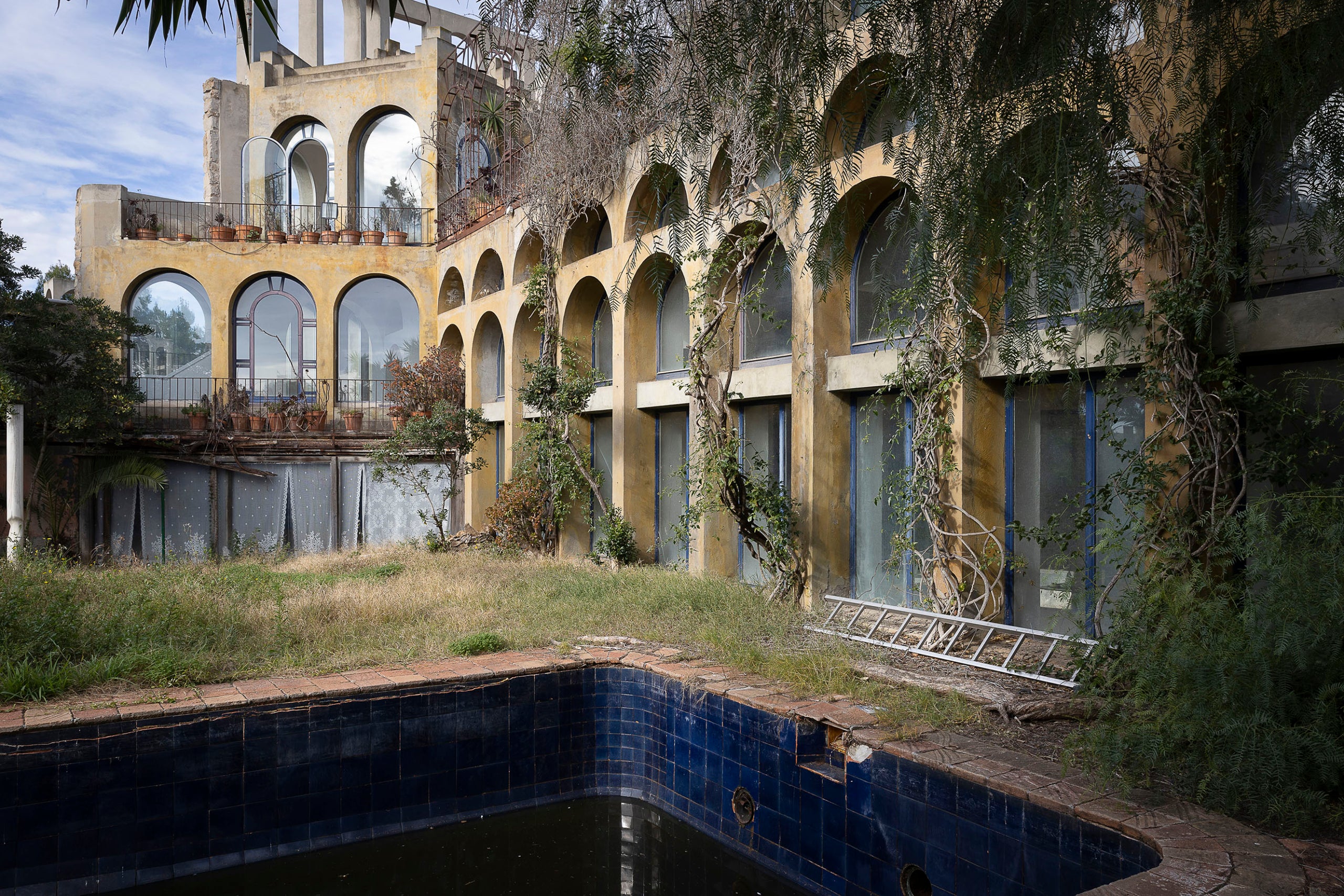 Al jardí, la piscina està buida i moltes de les enfiladisses seques. El ciment dels arcs que flanquegen aquest espai ha agafat un color ataronjat. Es nota que la casa viu en un impàs a l’espera d’aquest canvi de mans. A les plantes superiors, l’aspecte també és desangelat. Les humitats han aflorat en parts del sostre i les parets, que a capes deixen veure l’estructura interna de maons. El segon jardí que corona el conjunt amb un mar de testos també té moltes plantes seques.