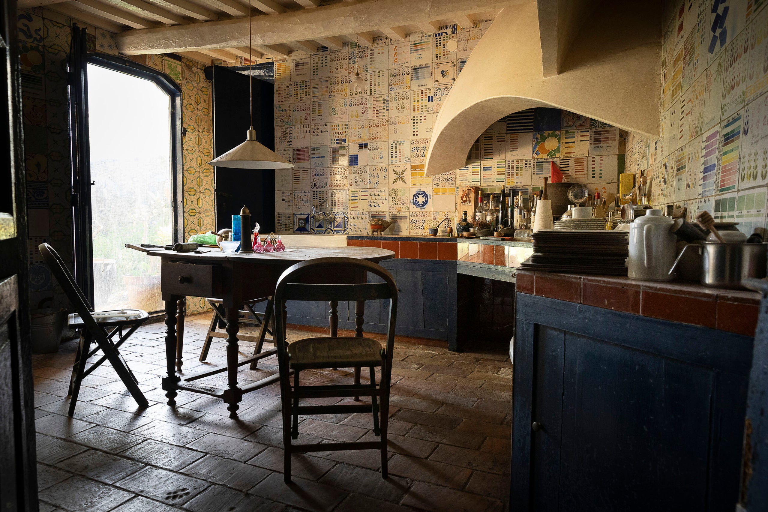 Les plantes inferiors encara mantenen l’essència d’antany. La cuina decorada amb rajoles rescatades de la fàbrica de ceràmica Pujol i Bausis -proveïdora d’arquitectes com Antoni Gaudí o Lluís Domènech i Montaner- on durant anys hi havia un lloro es manté gairebé igual, tot i que es va haver de canviar el sostre perquè s’enfonsava. Al voltant del pati hexagonal, diverses taules de despatx amb llibres i escultures que sobresurten entre els arcs que divideixen l’espai. També es conserven algunes de les múltiples catifes que cobrien bona part del terra i les portes corredisses de fusta que permeten dividir la planta en diferents estances. En un dels extrems, s’acumulen dossiers amb documentació i una col·lecció interminable de claus. L’habitació on dormia Corberó es manté pràcticament sense alterar, com si esperés el retorn del seu amo.