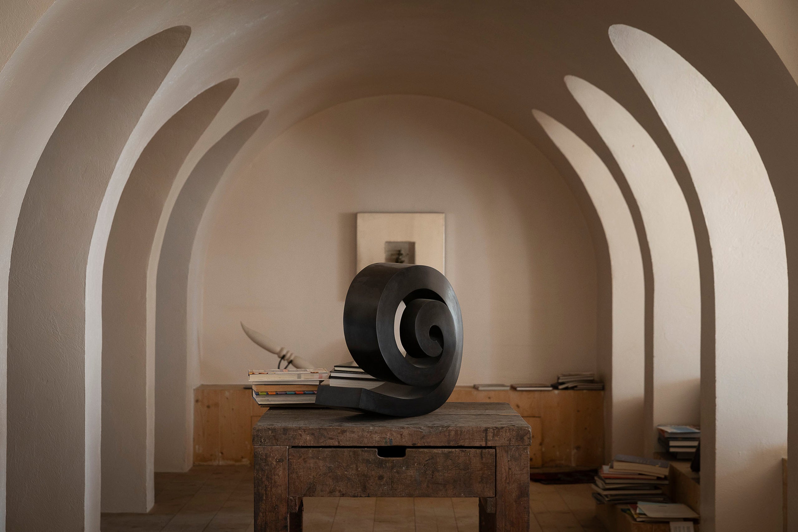 Hi van poder tornar l’any 2018, tot just uns mesos després de la mort de l’artista. La visita la van fer aleshores de la mà de la Maria Dolors Rica, Midu, la seva vídua i l’encarregada de conservar aquest llegat: un conjunt de 3.600 metres quadrats construïts entorn d’un pati hexagonal que guarda 400 obres amb la firma de Corberó. Una herència magnífica, però enverinada. El costós manteniment del recinte obligava l’única inquilina de la casa a fer mans i mànigues per poder conservar-la en bon estat. Aquest hàndicap ja vaticinava llavors un traspàs que havia d’arribar tard o d’hora. A mitjan 2022, els hereus van vendre a l’Ajuntament d’Esplugues per tres milions d’euros del conegut com a Espai Corberó, una gran estructura d’arcs de ciment de tres pisos contigua al domicili amb escales infinites que semblen voler fer realitat els dissenys impossibles d’Escher. Aquesta operació va ser un baló d’oxigen que va permetre a la vídua i a la filla de l’escultor tirar endavant fins al 2024.
