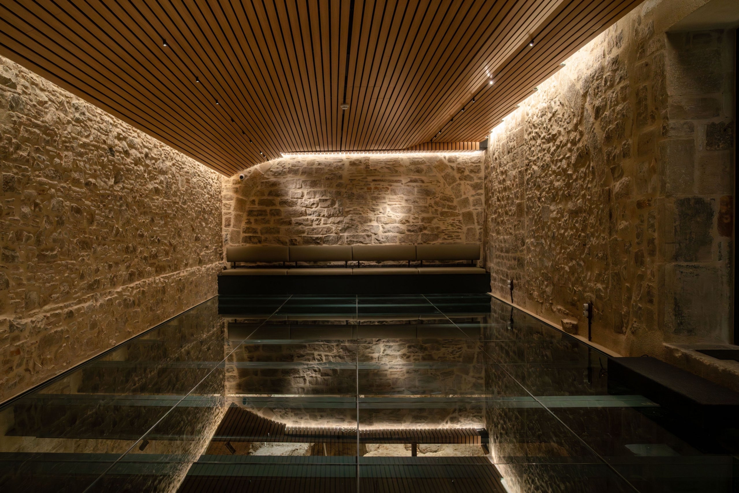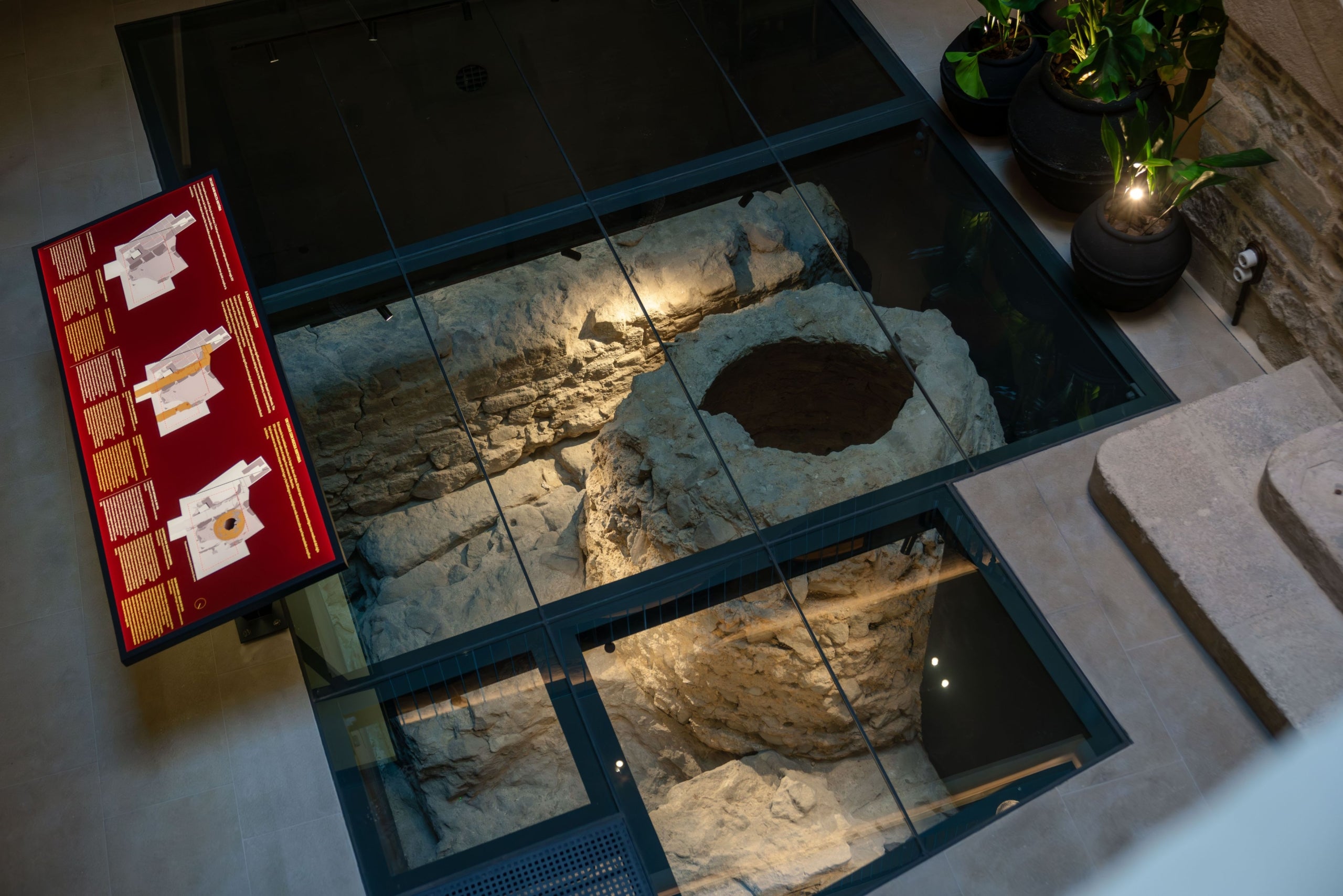 Les parets que envolten el pati formen part també del discurs museogràfic. Conserven restes de la casa medieval bastida al segle XIV, reformes modernes i intervencions dels segles XVIII i XIX. Cada tram de mur explica un moment diferent de l’evolució de l’edifici, i en conjunt permeten entendre com aquest pati ha estat reconfigurat moltes vegades al llarg de la història sense perdre mai el seu caràcter funcional.