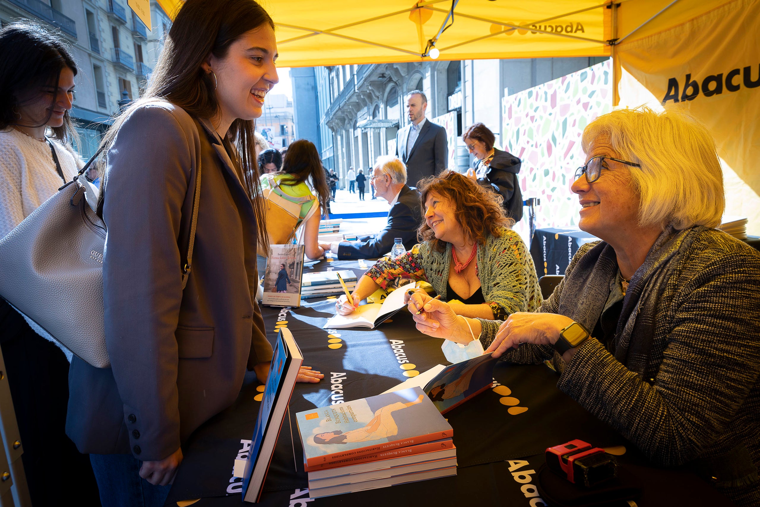 En els diferents punts de la ciutat, autors i lectors han tornat a reunir-se. S’han creat llargues cues davant escriptors com Regina Rodríguez Sirvent, Pedro Almodóvar, Pol Guasch, Carlota Gurt, Albert Sánchez Piñol, David Trueba, David Uclés o Eduardo Mendoza. Tots ells han rebut amb il·lusió des de primera hora del matí totes aquelles persones que s’han acostat a les parades per parlar amb ells, fer-se fotografies, demanar una signatura i, fins i tot, alguna abraçada, en el cas dels més entusiastes.