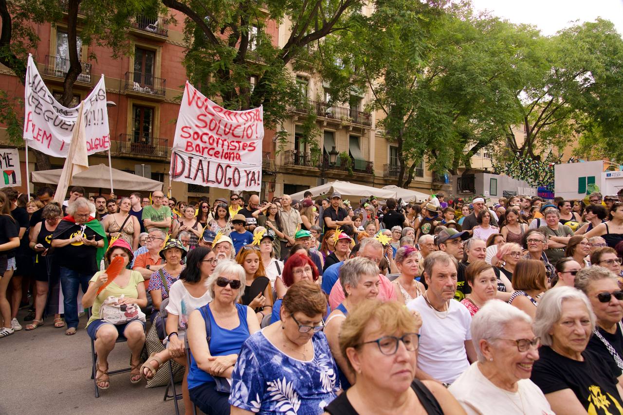 “Això no és només un atac directe a la Comissió del Carrer Progrés, ho és també a la Festa Major de Gràcia, a la memòria col·lectiva i a la resistència dels barris”, lamentaven dies enrere en un comunicat. Durant l’acte, davant la seu del districte, els membres de la comissió han lluït pancartes pregant la regidora Bonet a “parlar i resoldre” conflictes.
