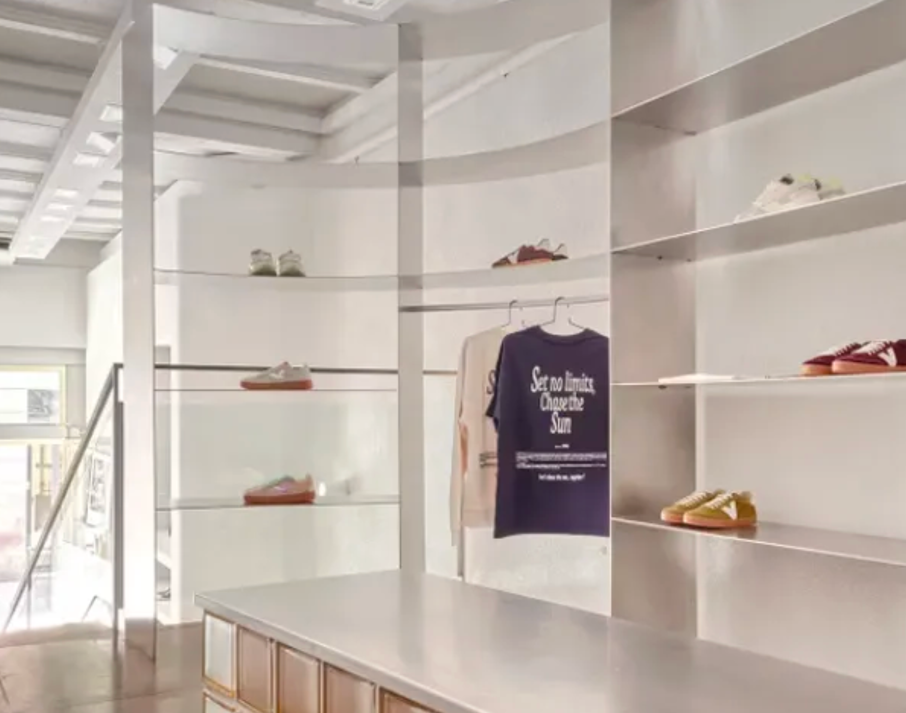 L’espai té 150 m² repartits en dues plantes on hi ha les col·leccions de dona, d’home i de nens, i les vambes estan exposades en parets d’alumini o en blocs de vidre de colors. Ara bé, aquesta primera botiga no significa que Victoria deixi de comercialitzar els seus productes allà on fins ara ho ha fet, simplement és una nova experiència de compra totalment compatible amb la venda que fins ara els ha reportat un gran èxit comercial.
