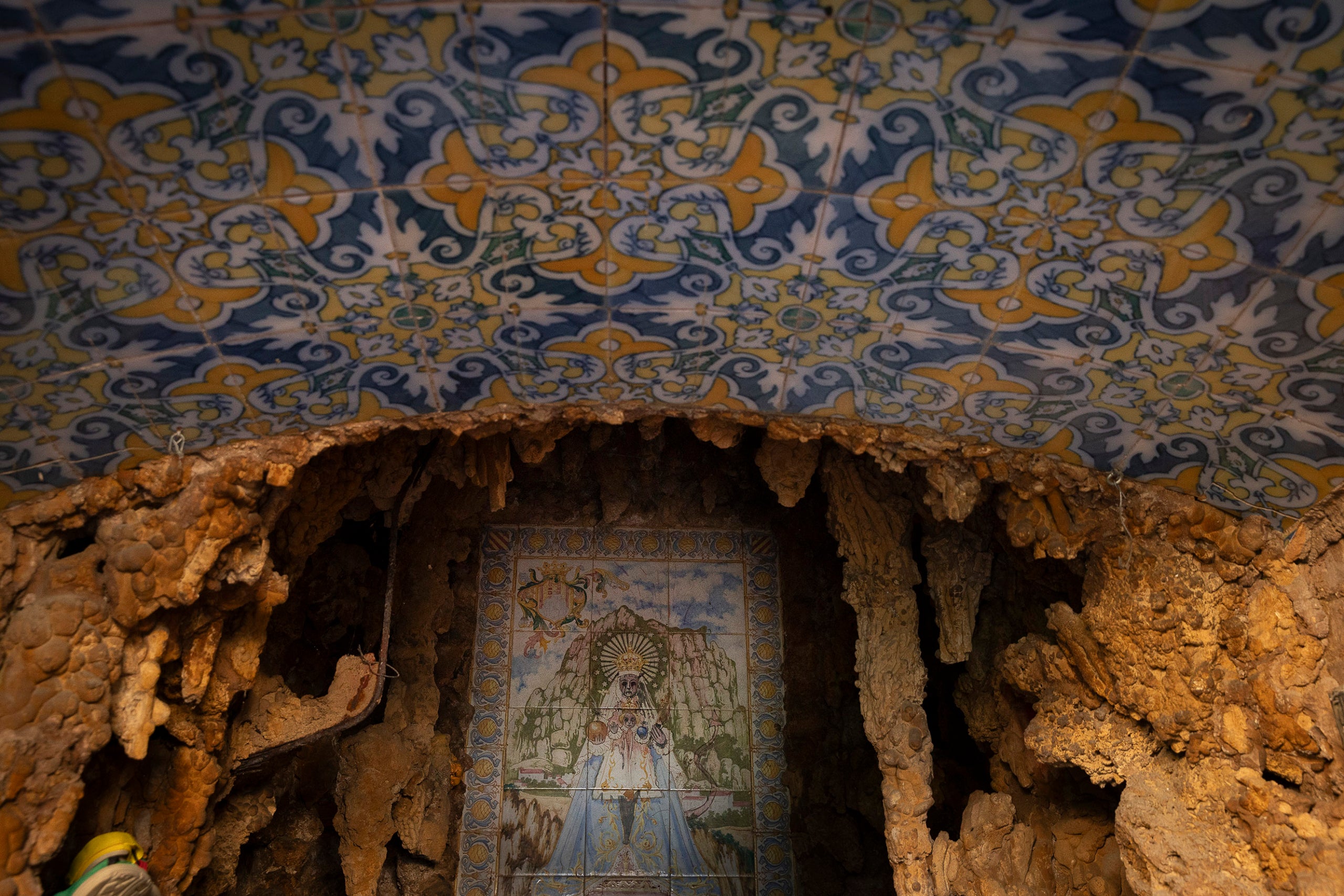 Flanqueando el edificio, encontramos restos del jardín romántico comidos por la vegetación, pero donde aún se aprecian varios estanques, surtidores de agua con forma de cara de león e incluso una serie de frisos de piedra que parecen representar la adoración a Jesús y las ofrendas de los Reyes Magos. En la parte inferior de la finca, se guarda uno de los tesoros de la Selva. En una especie de gruta también abierta en la roca, hay una bóveda hecha a partir de baldosas cerámicas con unos motivos florales particulares. Esta hace de antesala para una Virgen María también hecha de baldosas que sostiene en sus brazos al niño Jesús. Ambos tienen los ojos pintados de negro, otra reliquia bastante inquietante de la época de la Jungla.