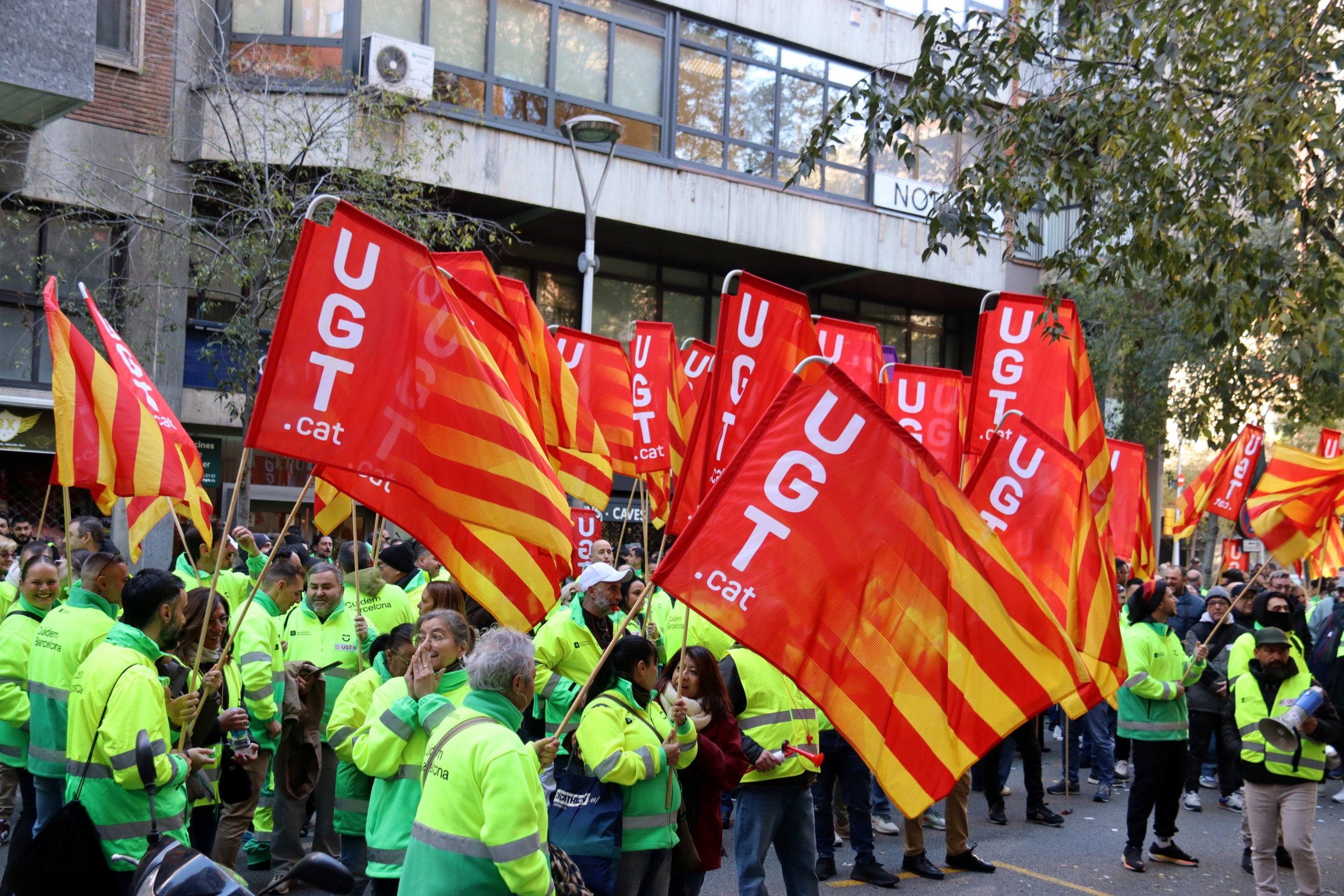 Cerca de doscientos trabajadores del servicio de limpieza de Barcelona protestan este lunes frente a la sede del Departamento de Trabajo. La manifestación, en marcha desde las 10:30 horas, coincide con la reunión de mediación que se ha convocado para desbloquear las negociaciones entre las cuatro empresas que operan el servicio en Barcelona y el sindicato. Algunos manifestantes, que ya se habían concentrado hace unos días en la plaza de Sant Jaume, frente al Ayuntamiento de Barcelona, han quemado un contenedor.