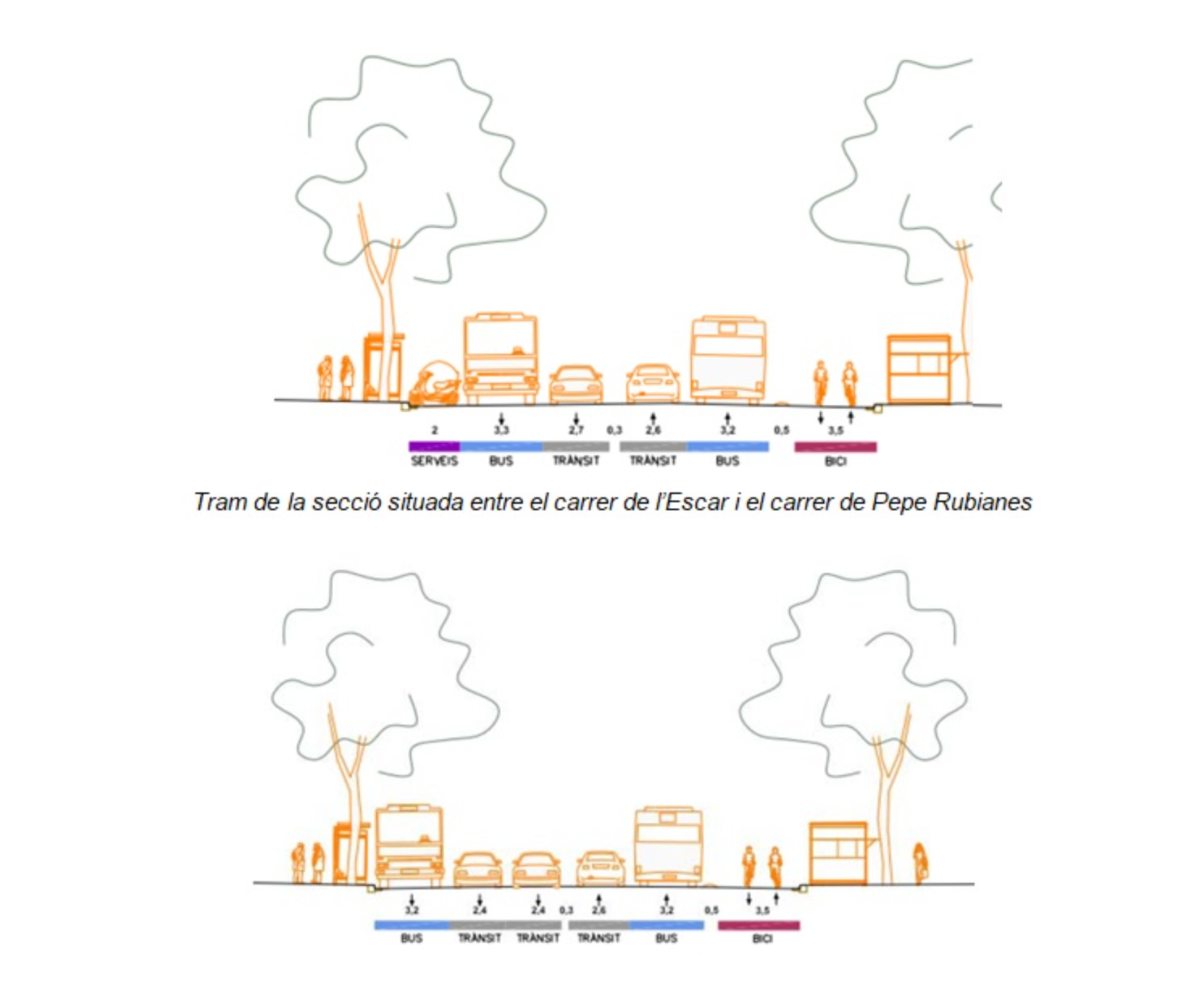 El carril será bidireccional y se ubicará en la calzada, junto a la acera del lado del puerto. Tendrá una anchura de 3,5 metros y habrá medio metro más de espacio para incluir las piezas separadoras. Como los otros carriles, habrá semaforización y señalización específica al carril, que convivirá con dos paradas de autobús con plataforma. Los ciclistas tendrán que ceder el paso a los peatones cuando suban y bajen del bus, puesto que pasarán por esta plataforma de la parada. Además, el proyecto de carril buzo incluye la mejora de los pasos de peatones, el cambio de los reguladores semafóricos existentes, el desplazamiento de un punto de carga de motos eléctricas y de una columna de alumbrado y los ajustes necesarios en la red de alcantarillas.