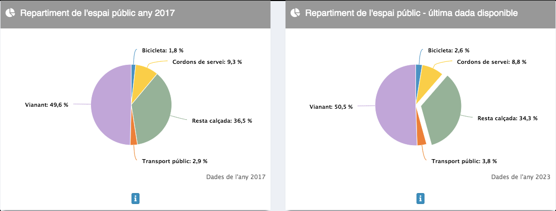 El vehículo privado ha cedido terreno sobre todo a la bicicleta y al transporte público. Según los datos disponibles en 2023, la mitad del espacio urbano de Barcelona son aceras y plataformas únicas con prioridad para el peatón. El espacio correspondiente al transporte público, básicamente carriles bus y el tranvía, crece y se sitúa en el 3,8% del total. Una situación similar nos encontramos con el espacio reservado para bicicletas y patinetes, que crece hasta el 2,6% gracias en parte a los 32 kilómetros de carril bici nuevos construidos entre 2021 y 2023. Finalmente, el espacio correspondiente a la zona de carga y descarga cae del 9,3% al 8,8%. Una bajada que los comerciantes han criticado en varias ocasiones. Sin ir más lejos, el presidente del Eix Nou Eixample, Sergio Moral, aseguraba, en una conversa con el TOT Barcelona el noviembre pasado, que incluso hay comercios que «han tenido que cerrar».