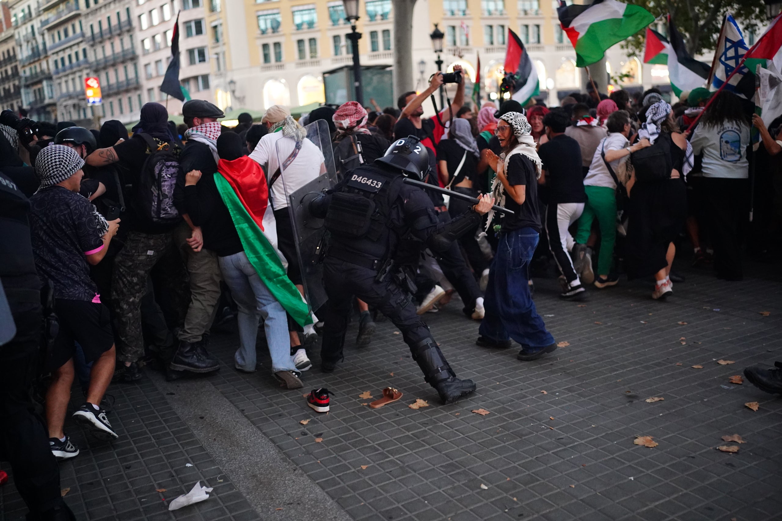 Pasadas las 19.30 horas, los Mossos d’Esquadra han dispersado a los manifestantes en la plaza de Cataluña. Los agentes al menos han retenido a una persona. Según informa betevé, algunas personas han hecho una barricada con bicicletas de alquiler que la policía catalana ha retirado de la calzada.