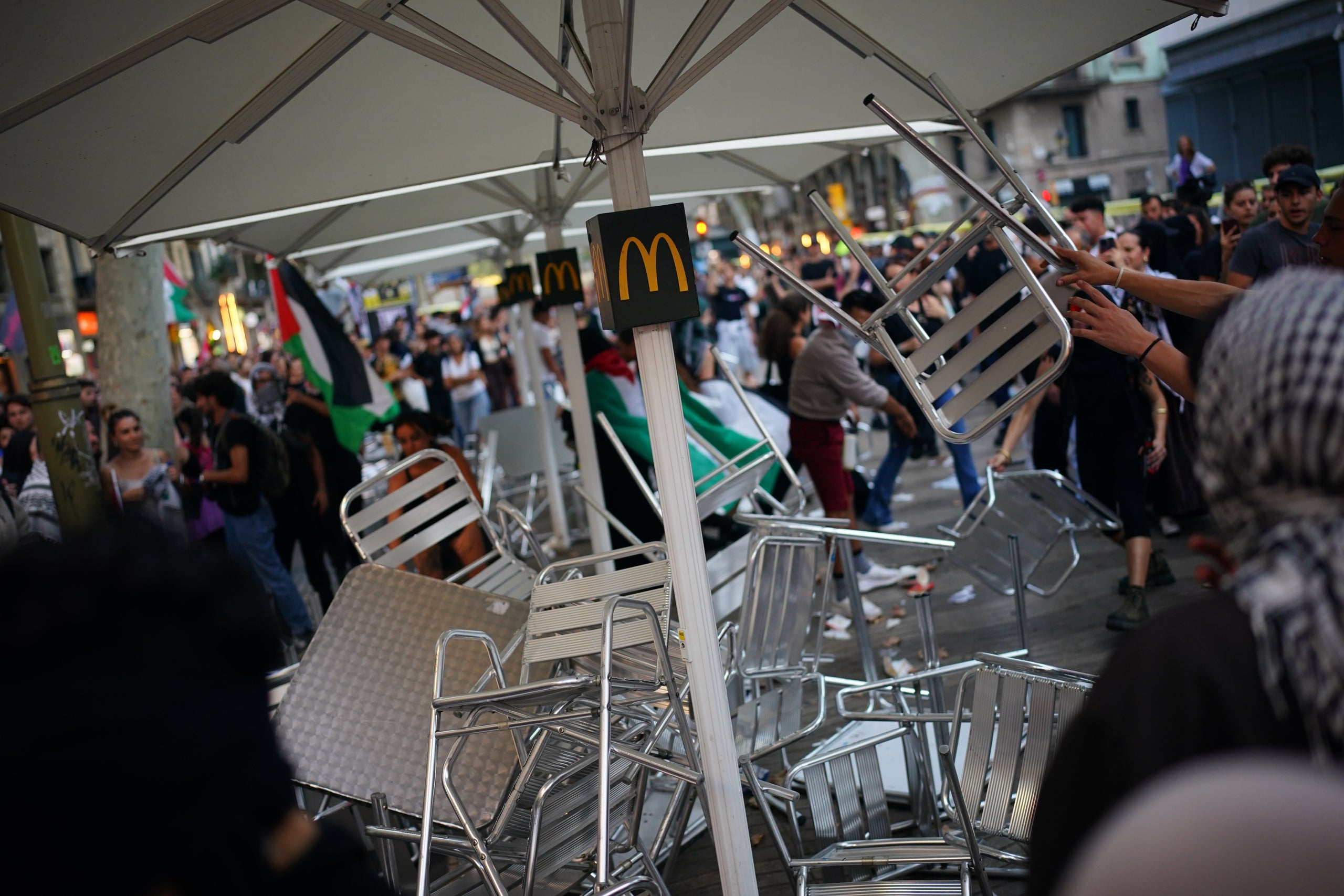 Un grupo reducido de personas ha atacado algunos locales de Barcelona durante la segunda manifestación a favor de Gaza y contra el genocidio de Israel este sábado. La protesta ha comenzado hacia las 17.00 horas en el Arc de Triunfo y se ha dirigido hacia Ciutat Vella. Entre los establecimientos que han sufrido daños hay un Starbucks de la Via Laietana, y un supermercado Carrefour, un McDonald’s y un Burger King en la Rambla. En esta movilización han participado como mucho 2.000 personas, dice el Ayuntamiento. Los Mossos d’Esquadra han terminado cargando contra los que han provocado actos vandálicos.