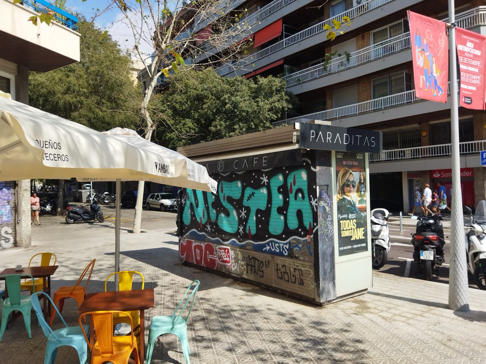 Tres de las instalaciones que hace meses están sin uso se encuentran en la Sagrada Família y en la frontera de este barrio con el distrito de Sant Martí. Un quiosco está en la confluencia de Nàpols con València. El periodista y vecino Andreu Farràs denuncia en conversación con este medio «la desidia municipal» para retirar una instalación que no sirve para nada. Antes, el quiosco estaba en la misma esquina, pero en el lado Besòs-montaña. Con las obras de conexión del tranvía, entre Glòries y Verdaguer, el quiosco fue cambiado de lugar, al lado Llobregat-montaña, pero no se ha retirado definitivamente. Otro quiosco abandonado desde hace más de tres años está en el lado montaña de València con Lepant y es un obstáculo para el paso de los turistas y vecinos que transitan por la zona. Y el tercero en desuso desde hace años se encuentra entre las calles de Dos de Maig y Rosselló-Fresser, justo delante de una oficina de la Caixa, y no tiene ninguna utilidad.