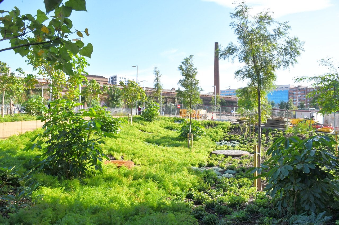 Además, en toda la superficie del parque se han plantado árboles, un total de 486 nuevos árboles, 3.800 plantas arbustivas, un centenar de trepadoras y 4.800 vivaces; y para adaptarse a la sequía se han plantado 1.200 metros cuadrado con un césped que tiene poca necesidad hídrica y el parque cuenta con sistemas de captación de energía y los mecanismos necesarios para el drenaje de la lluvia y el aprovechamiento del agua freática y el riego del verde se hace con un sistema de goteo y difusores.
