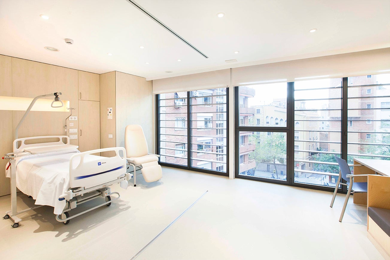 La renovación iniciada en 2021 ha implicado la remodelación de la fachada, con una arquitectura integrada en el entorno, ecológica y energéticamente eficiente. Junto a esto, se ha mejorado y optimizado, en beneficio de la calidad asistencial, la tercera planta de Hospitalización, con una nueva área para los pacientes de Cirugía Mayor Ambulatoria y una habitación suite, así como el Laboratorio y sala de extracciones.