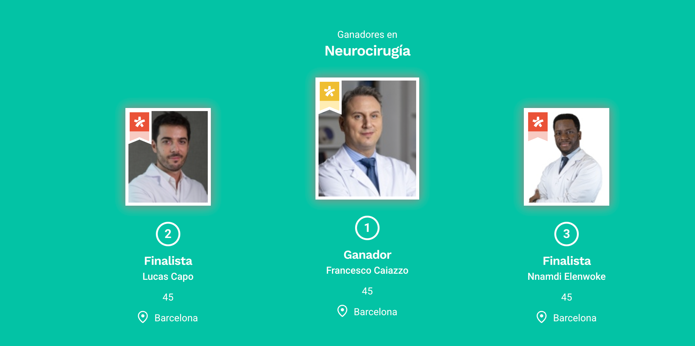 La plataforma de gestión de pacientes y centros sanitarios referente en el sector privado, Doctoralia, reconoce la labor de los profesionales de todo el Estado español con sus galardones anuales. Este año, la categoría de mejor especialista en neurocirugía ha sido para el doctor Francesco Caiazzo, de Barcelona, quien competía por el premio con los doctores Lucas Capo y Nnamdi Elenwoke, ambos también originarios de la capital catalana. Es decir, los tres finalistas -y el ganador- de la categoría a mejor profesional sanitario del sector privado de la neurocirugía del Estado español han sido barceloneses. Francesco Caiazzo ha sido elegido por los pacientes y sus compañeros del sector -quienes forman el jurado de los premios de Doctoralia- como el mejor neurocirujano del Estado español.