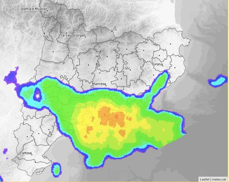 La lluvia será la tónica habitual durante todo el día en toda Cataluña, pero estará concentrada en el sur y el noreste. El Meteocat ha puesto en alerta 13 comarcas de las Tierras del Ebro y de Girona, donde pueden caer más de 20 litros por metro cuadrado en solo 30 minutos. El Montsià, el Bajo Ebro, la Tierra Baja, la Ribera de Ebro, el Priorato y el Bajo Campo están en alerta desde primera hora de la mañana, donde a lo largo del día se pueden acumular hasta 100 litros por cuadrado. Durante la noche ya ha llovido con intensidad en el sur del país, donde han caído 32 litros por metro cuadrado en la Horta de Sant Joan (Tierra Alta), 28 litros en Aldover (Bajo Ebro) o 25 en la Ametlla de Mar (Bajo Ebro). De cara a la tarde, la Garrocha, la Selva, el Pla de l’Estany, el Gironés, el Bajo Ampurdán y el Alto Ampurdán se sumarán al aviso por intensidad de lluvia.