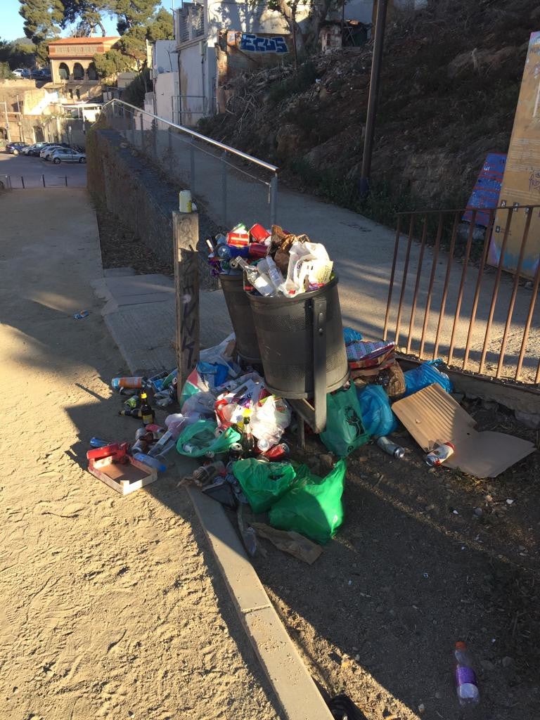 Los vecinos también han publicado imágenes de papeleras llenas alrededor de los búnkeres y aseguran que los servicios de limpieza no dan abasto. «Ya no hablamos de la basura que dejan al borde de la valla y que tiene que recoger el sufrido (y nunca bastante agradecido) servicio de limpieza», denuncian en las redes.