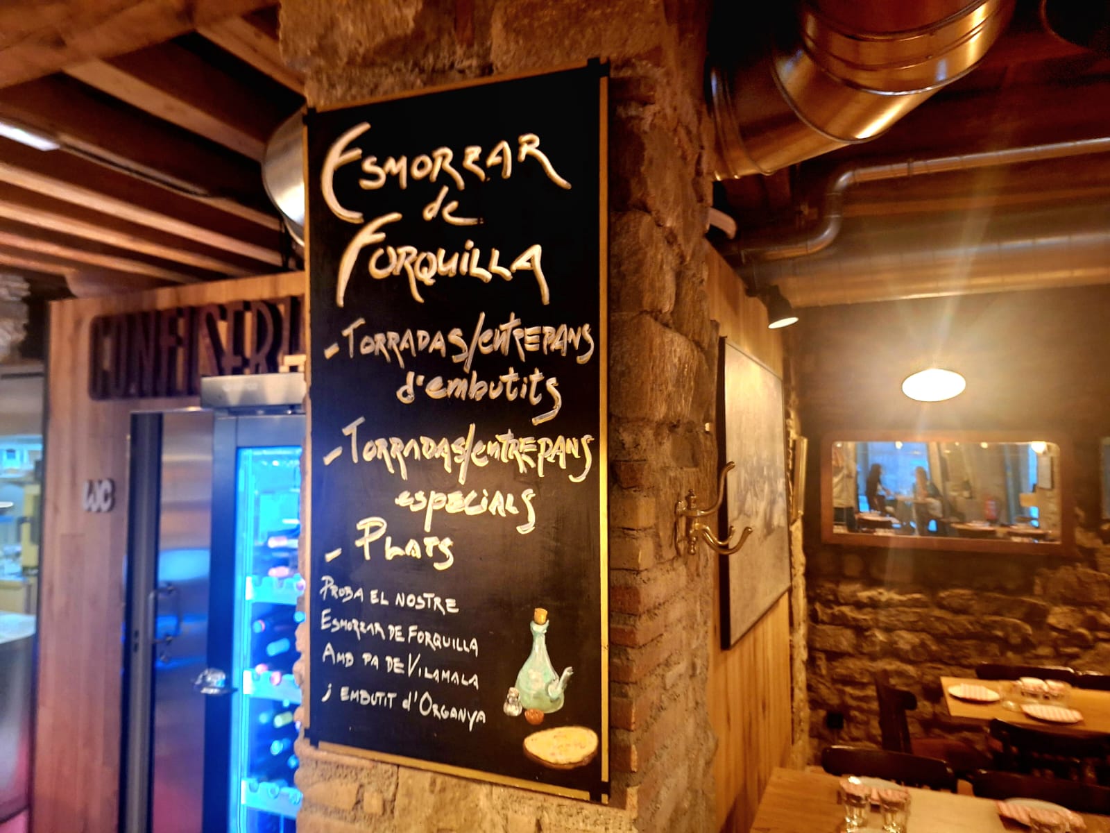 Entre las tapas, en el Cafè de l’Acadèmia tienen las de toda la vida: la ensaladilla rusa con ventresca, los boquerones fritos, las bravas, la esqueixada de bacalao, los calamares a la andaluza… La carta incorpora platos no aptos por las personas con el colesterol alto, como los huevos fritos con patatas y chistorra, y clásicos del mar como el bacalao con samfaina, los mejillones con tomate, cebolla y vino blanco y los chipirones con judía de Santa Pau y morcilla del Perol. También cocinan caracoles con romesco, cap i pota, albóndigas caseras con sepia y macarrones del cardenal gratinados, y cuentan con tablas de embutidos y quesos por todos aquellos clientes que buscan una comida más informal.