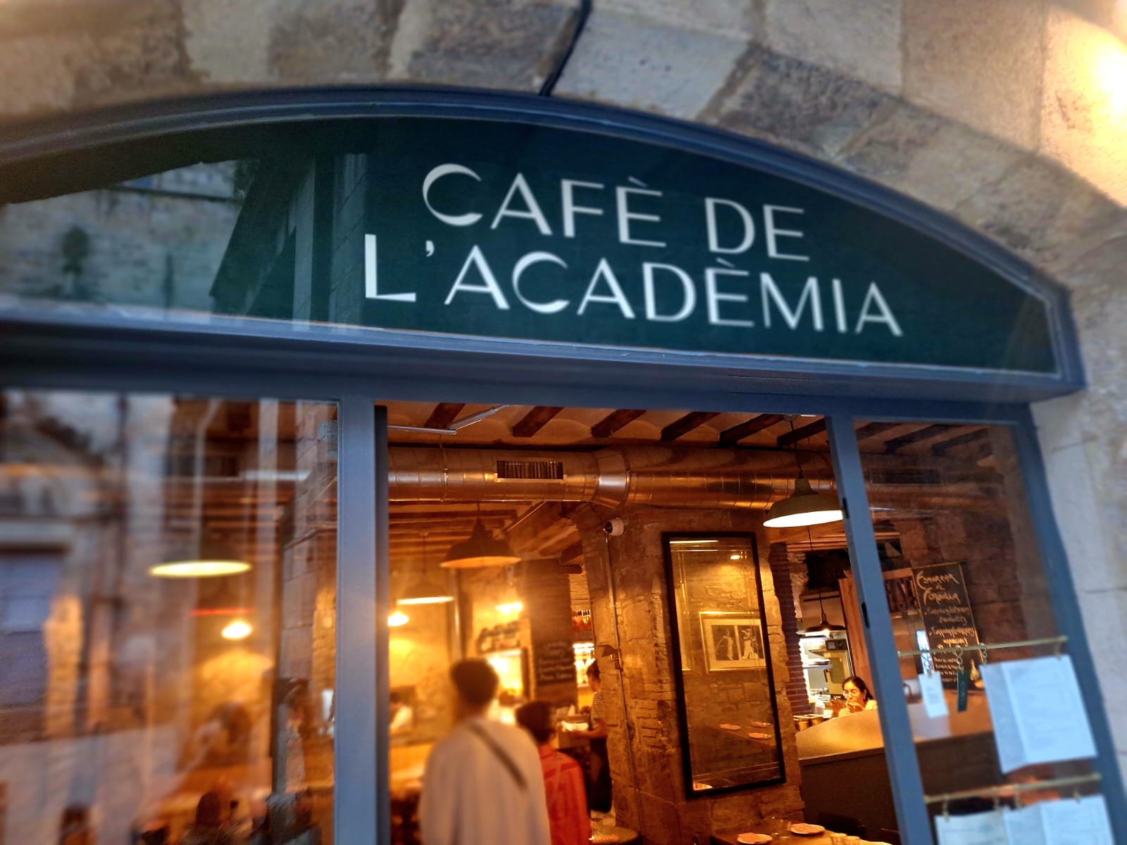 El Cafè de l’Acadèmia abre todos los días entre las 12.00 horas y medianoche, con cocina ininterrumpida hasta las 23.30 horas y la intención de ofrecer próximamente desayunos. Está decorado como si se tratara una casa de comidas tradicionales, con baldosas, paredes de piedra y obra, techos con vigas de madera, mesas de mármol y sillas de madera. La intención del grupo San Telmo es apostar por los productos locales, como el pan del horno Vilamala y los quesos de Casa Carot.