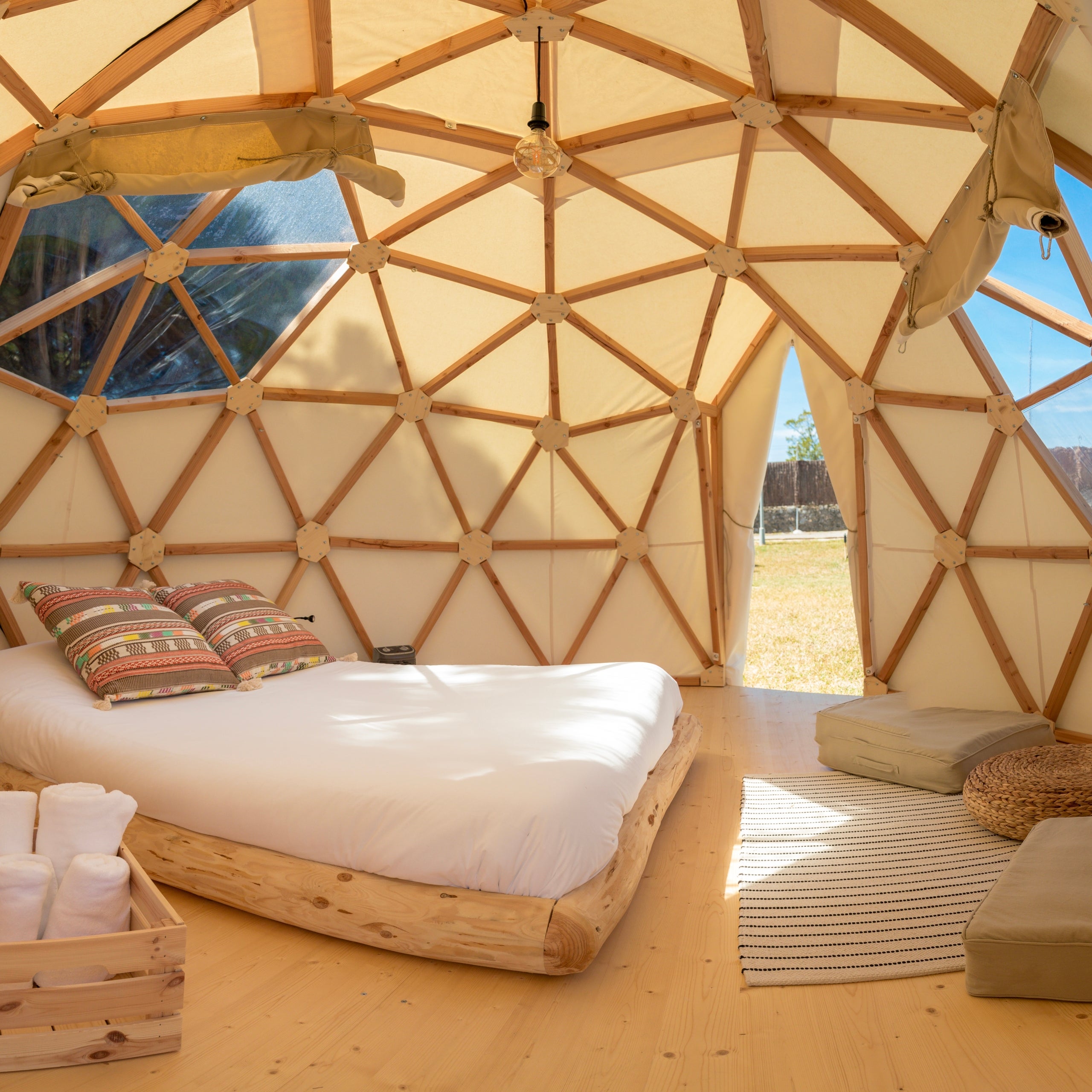 La Orión, con capacidad para 5 o 6 personas, está más pensado para las familias o los grupos de amigos. Pero un glampin es también una opción ideal para una estancia romántica. Dormir en una Domo”, una tienda glampin con forma geodésica y contemplar las estrellas y disfrutar de los sonidos de la naturaleza en pareja.