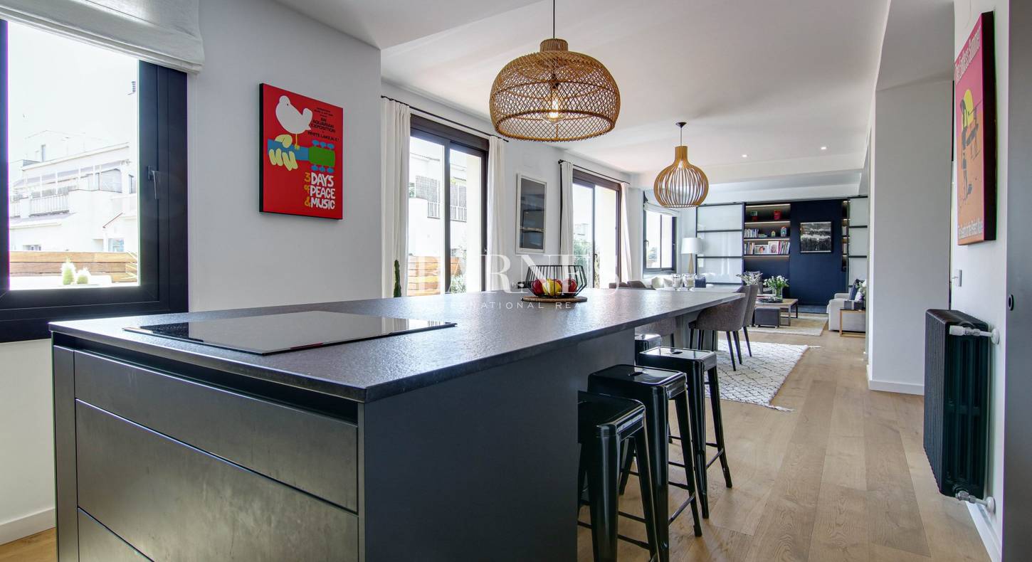 La immobiliària Barnes Internacional s’ha embutxacat la segona venda més cara, amb un àtic al centre de Sarrià per 2,1 milions d’euros. Amb 235 m2 i 5 habitacions, suma a més un centenar de metres quadrats extra en terrasses al voltant del pis. Va ser reformat fa dos anys amb materials premium i distribució àmplia per fer-ne pujar el preu. Té una ‘zona de dia’ amb cuina oberta, menjador, sala d’estar i un salonet independent amb porta corredissa que pot servir com a sala de televisió, biblioteca o dormitori de convidats.