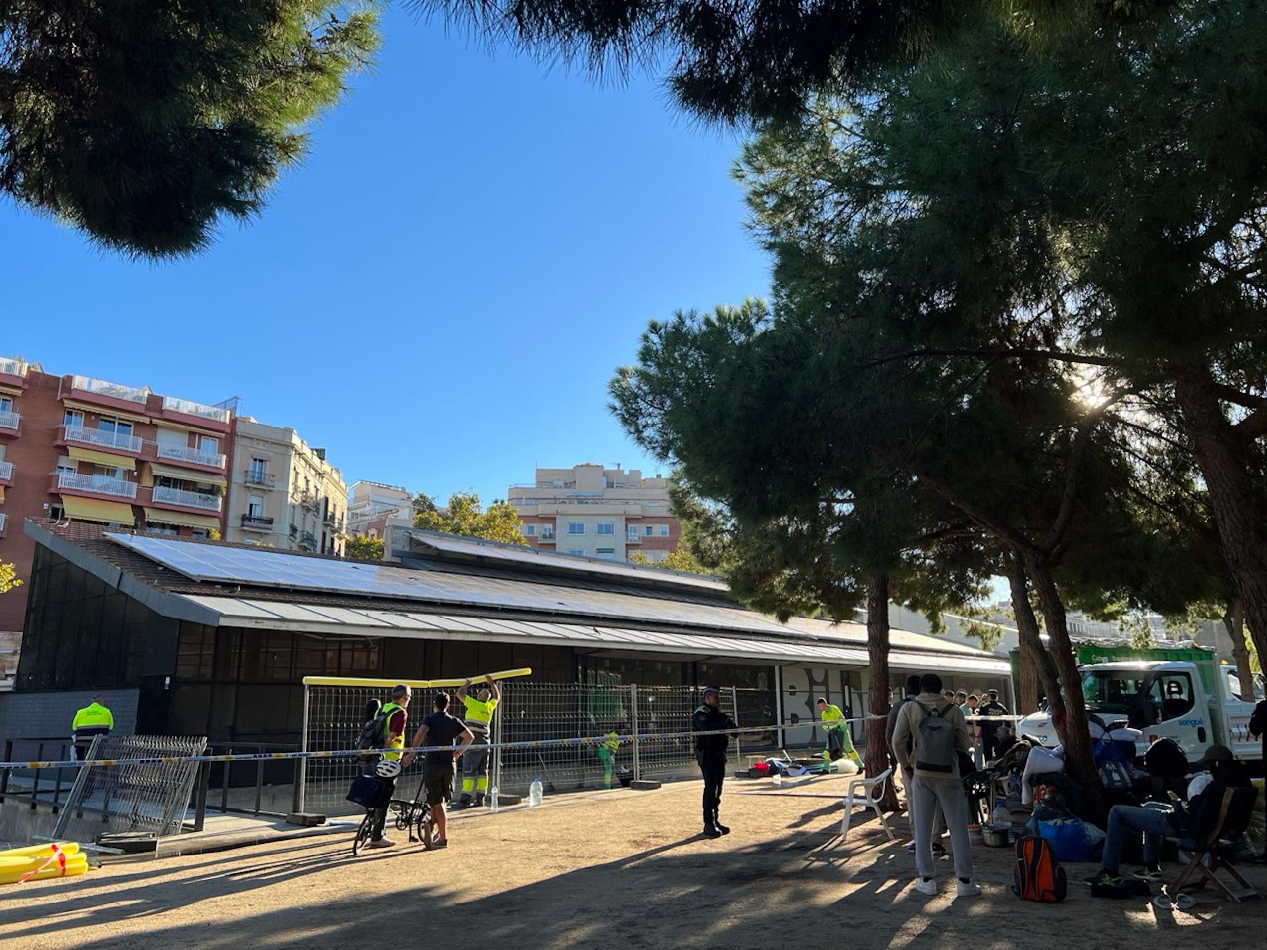 Treballadors de la fundació Arrels s’han apropat al parc per interessar-se per l’operatiu i donar suport a les persones que hi vivien. Un cop desallotjades les persones que hi dormien, treballadors municipals han col·locat tanques a la zona.