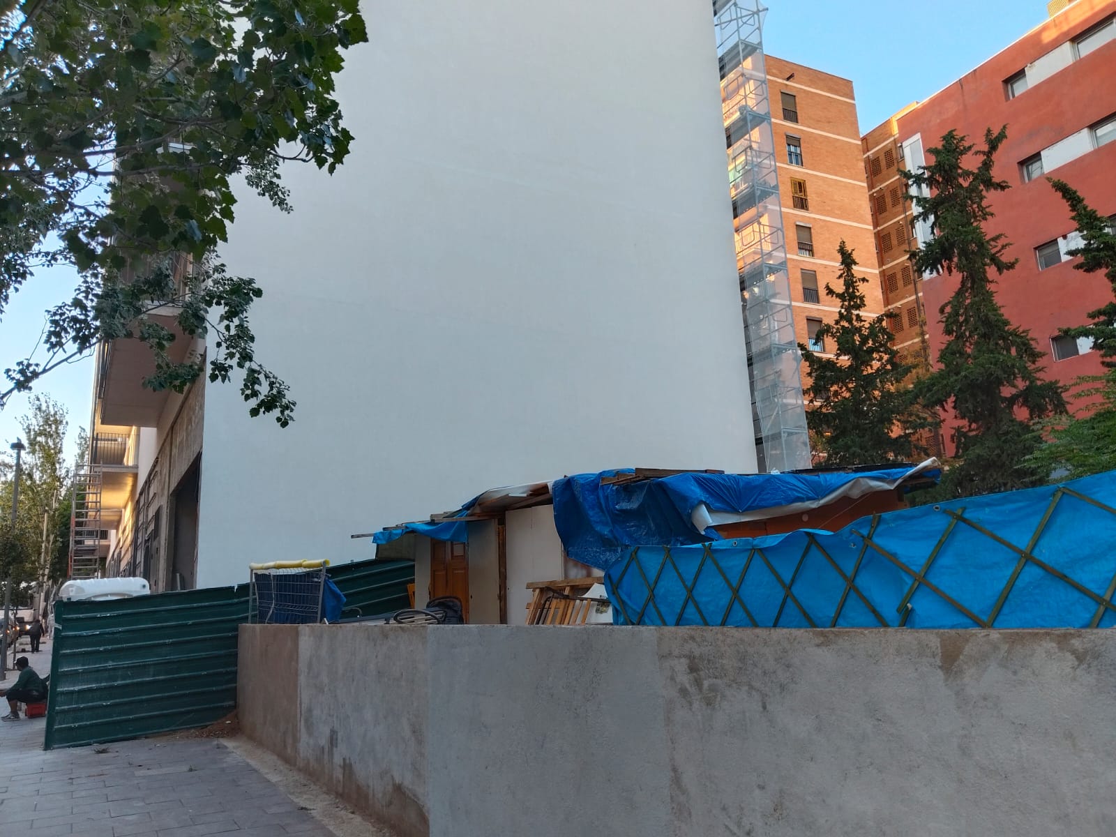 Segons ha pogut comprovar aquest diari in situ, la promoció de luxe compta amb uns baixos comercials i disposen de porter a l’entrada. Encara s’estan acabant d’ultimar detalls i s’està aixecant un segon bloc de pisos just al costat. En l’única zona dels dos terrenys ocupats pels veïns anys enrere que la promotora encara no està construint, ha proliferat un assentament amb mitja desena de construccions.