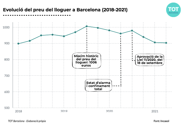 El problema –el beneït problema que estalviarà de mitjana més de 900 euros anuals als barcelonins amb contracte nou– és que no hi ha consens a l’hora d’analitzar els motius que hi ha darrera d’aquesta baixada de preus. L’aprovació de la llei de contenció de preus es va produir tres mesos després de la fi de l’estat d’alarma i del confinament total, amb un mercat en estat de xoc i un escenari volàtil que fa molt difícil extreure conclusions definitives sobre què hauria passat sense regulació.