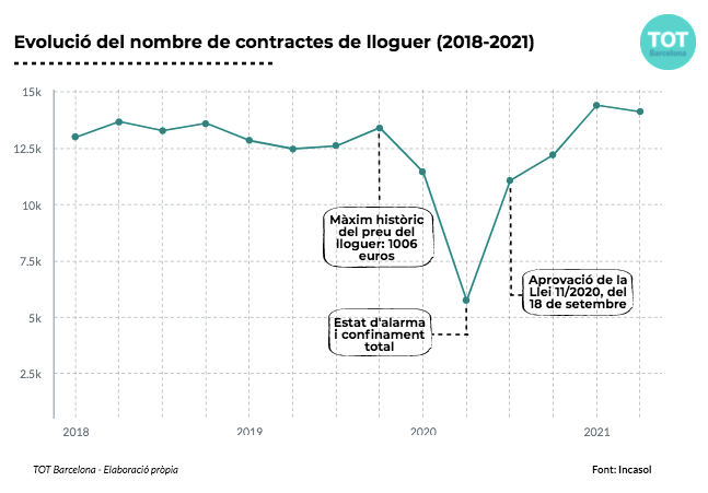 Les entitats prohabitatge celebren que els pitjors auguris de les patronals i les associacions de propietaris no s’hagin arribat a complir i el mercat hagi mantingut el dinamisme posterior al confinament. Per segon trimestre consecutiu, a Barcelona s’han superat el 14.000 contractes signats, rècord històric per la ciutat que segons el Sindicat evidencia que la llei de contenció de preus no ha espantat els propietaris, que treuen pisos al mercat encara que sigui amb la certesa que guanyaran menys que abans.