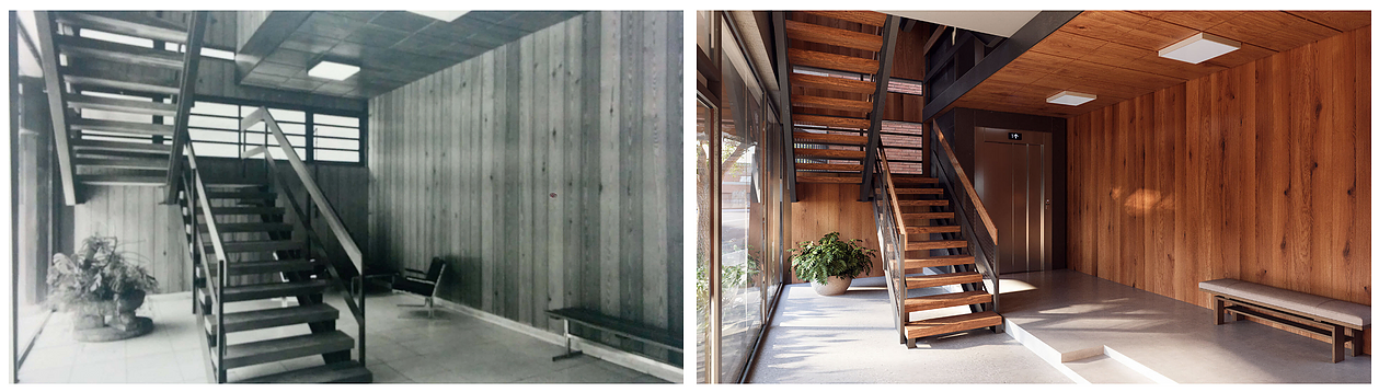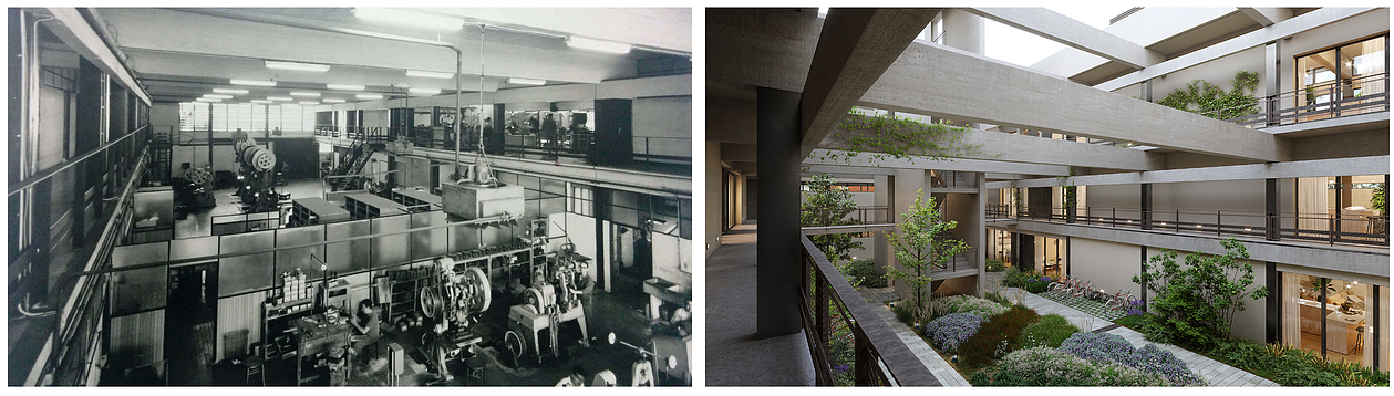 La reconversió de l’edifici, d’estil brutalista i catalogat com a patrimoni de nivell C, ha salvaguardat l’estètica de l’antic vestíbul recobert de fusta. El terrat-magatzem ha esdevingut una piscina panoràmica amb vistes a la torre Glòries i al mar, mentre que l’antiga sala de màquines és un pati verd al que donen tots els replans. Així, si bé alguns trets arquitectònics s’han respectat, el canvi d’ús absolut i l’absència d’elements contextualitzadors han esborrat a la pràctica la memòria manufacturera d’aquest indret.