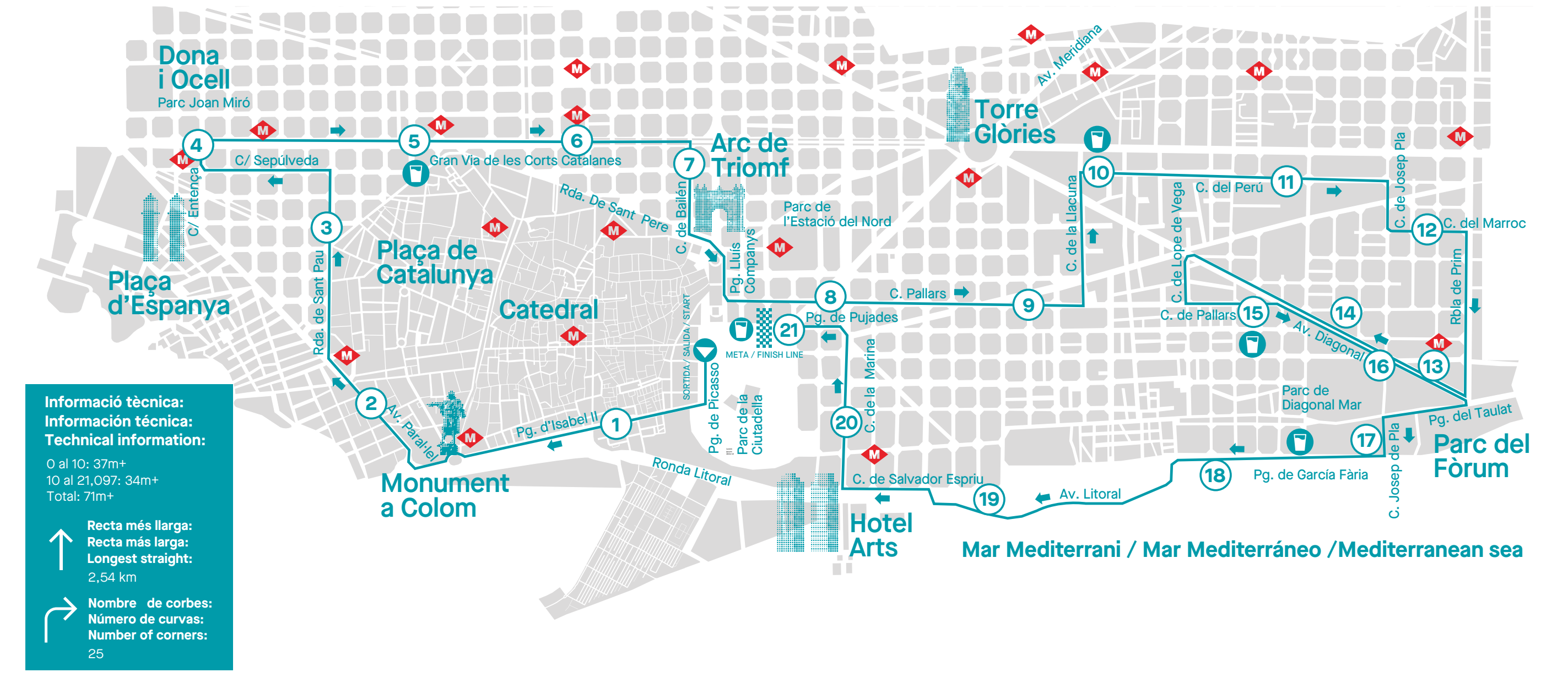 El circuit, de 21 quilòmetres, travessarà diversos punts cèntrics i del litoral barceloní. La sortida s’ubicarà al passeig de Picasso i avançarà per vies destacades com l’avinguda del Marquès de l’Argentera, el Paral·lel, la ronda de Sant Pau, Sepúlveda i la Gran Via. El traçat continuarà per carrers de l’Eixample i el Poblenou —com Bailèn, Pallars, Llacuna o Perú— fins a enllaçar amb la rambla de Prim i un tram de la Diagonal. El recorregut encararà el final pel front marítim, passant pel passeig de Garcia Fària i l’avinguda del Litoral, abans d’arribar a la meta al passeig de Pujades. A banda d’aquestes vies principals, també quedaran restringits molts carrers adjacents de manera puntual mentre hi passin els corredors.