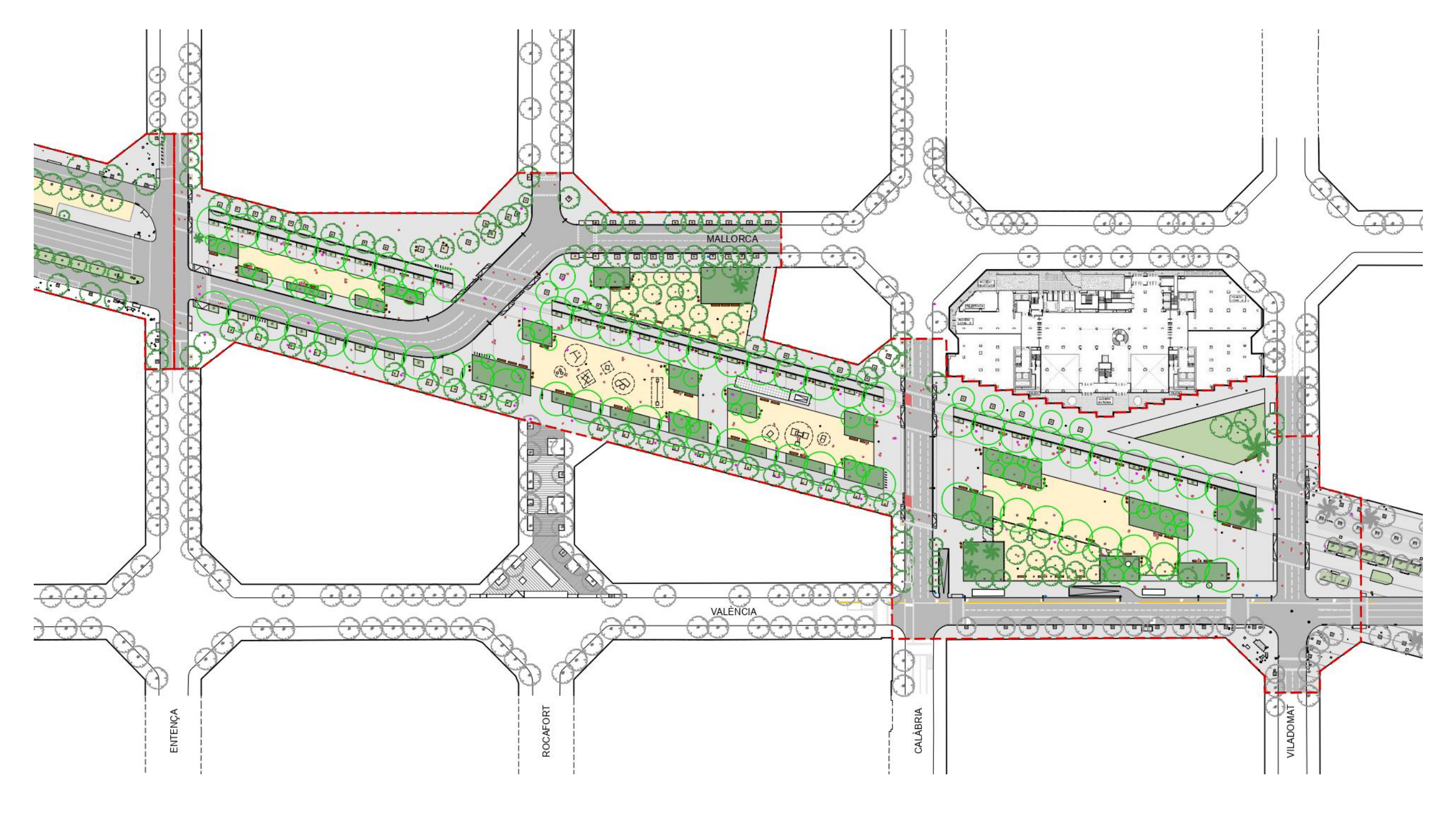 La intenció de l’executiu és reformar l’avinguda en tres fases. Només la primera, entre Viladomat i Calàbria, està previst en aquest mandat. Fins a Entença es faria a inicis del següent i el que queda fins a la plaça dels Països Catalans (davant de l’estació de Sants) no té calendari. El primer tram, segons els primers projectes plantejats, tindrà una plataforma única que ocuparà gran part del vial i un tram amb accés per a vehicles al costat mar. L’Ajuntament també dona continuïtat a la calçada que ve del carrer de Mallorca. “Contrasta amb la no continuïtat que li donen al vianant i a la bici. I es perd l’oportunitat de fer una gran zona verda al centre de l’eixample, que fa molta falta”, explica Domingo.