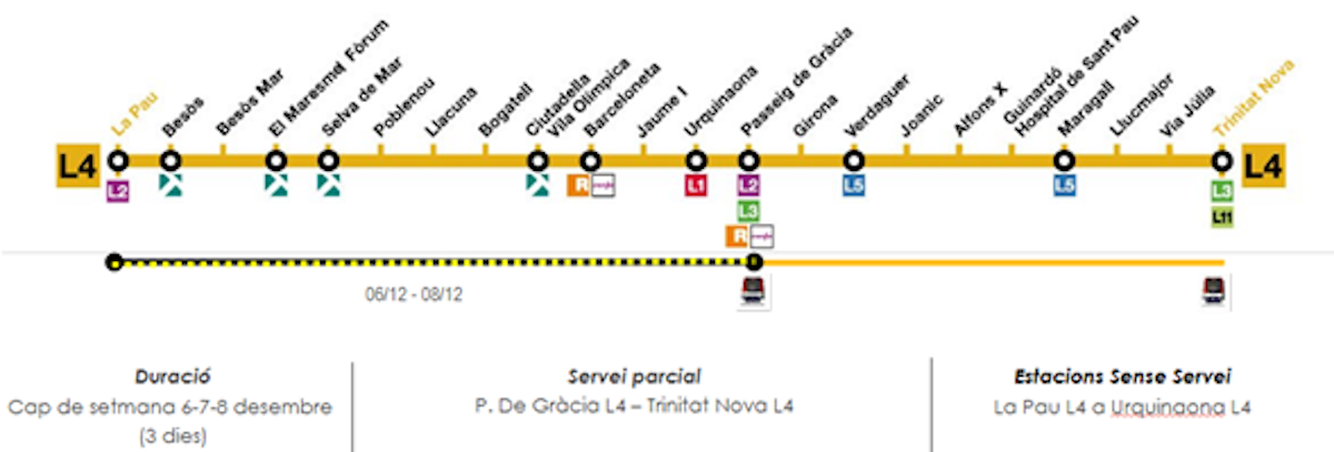 🔴 Del 6/12 al 8/12: sense servei entre La Pau i Passeig de Gràcia
