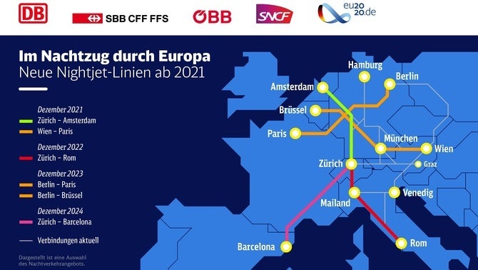En quatre anys, la capital de Suïssa, Zuric, quedarà connectada directament amb Barcelona amb un tren nocturn. Almenys aquesta és la intenció d’un projecte de diverses companyies ferroviàries d’Europa per impulsar viatges internacionals de manera més ecològica, ha informat TV3. El pla inclou la unió de 13 ciutats europees amb diverses línies. Les dues primeres rutes es posarien en marxa en un any. Connectarien Viena, Munic i París, d’una banda, i Zuric i Àmsterdam, d’una altra. Després s’anirien fent més connexions fins acabar l’any 2024 amb la incorporació de la capital catalana al projecte.