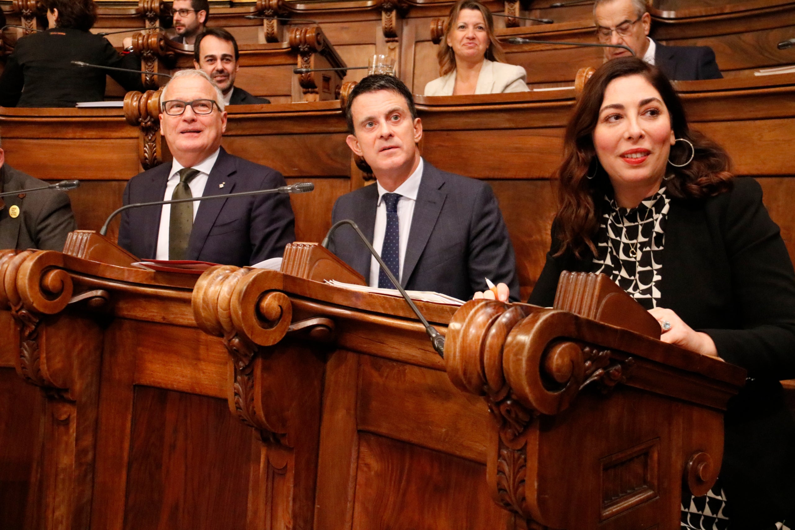 Els regidors Josep Bou (PP), Manuel Valls (Barcelona pel Canvi) i Luz Guilarte (Cs) abans d’un ple / ACN
