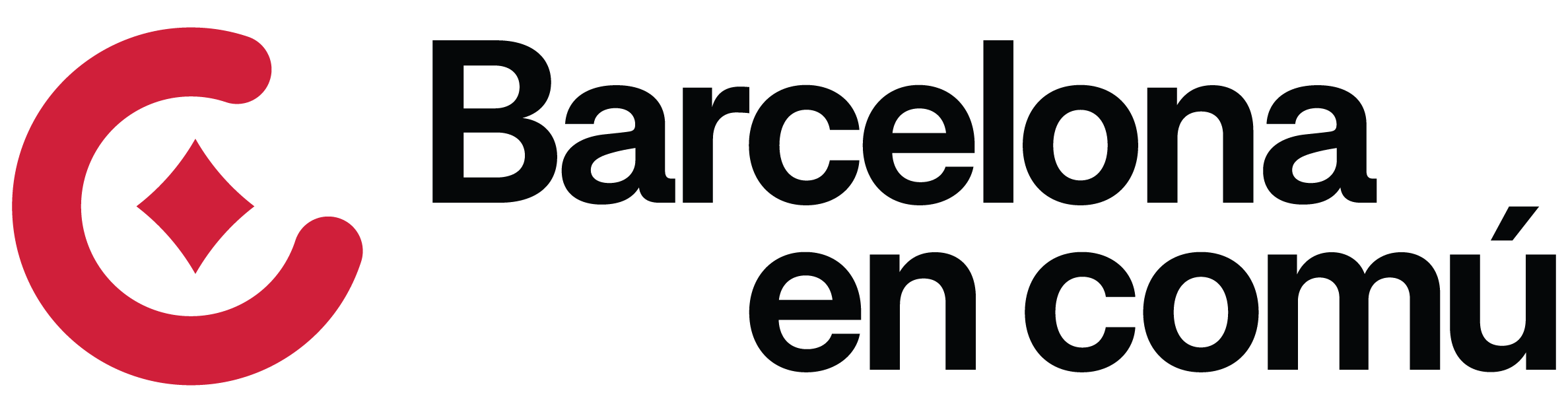 L’adeu de l’espiral no és l’únic canvi significatiu. Un rombe, que podria simbolitzar les cantonades de la trama Cerdà o una plaça, “l’espai on les persones es troben, discuteixen i construeixen comunitat”, irromp al centre de la imatge. I la tipografia de les lletres ja no separen entre Barcelona –abans més petit– i En Comú. La nova marca les iguala: “Barcelona” té el mateix pes que “en comú” i tots dos s’escriuen en minúscules. “El missatge és deliberat: la ciutat és el projecte, no el seu cognom”, explica la formació.