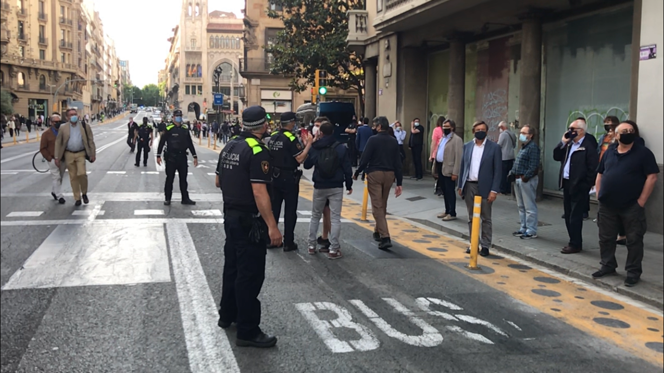 La protesta ha transcorregut amb certa tranquil·litat, llevat d’alguns microincidents, que no han arribat a res. Un primer, un jove que en passar els ha etzibat “Feixistes!”. Un dels manifestants l’ha perseguit. Ràpidament dos agents de la Guàrdia Urbana i un d’informació dels Mossos de paisà, l’han apartat i se l’han endut. Tot i que el jove rondinava, no l’han deixat passar més per Via Laietana.
