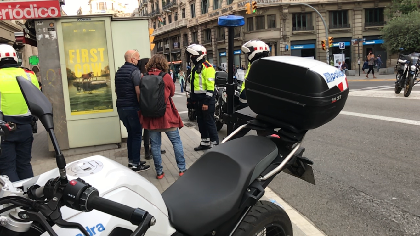 El moment de la identificació dels Mossos a dos independentistes a Via Laietana/QS