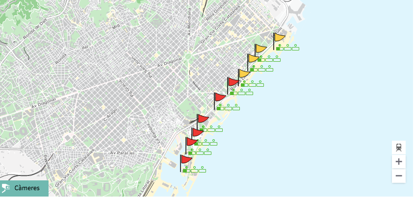 Protecció Civil ha alertat de la mala qualitat de l’aigua a moltes platges de Barcelona. A sis platges amb bandera vermella –Sant Sebastià, Sant Miquel, Barceloneta, Somorrostro, Nova Icària i Bogatell– s’hi ha prohibit el bany i quatre més tenen bandera groga.