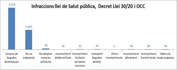 La tasca policial d’aquest estiu ha estat molt marcada per la pandèmia i la Guàrdia Urbana ha insistit que les sancions són un últim recurs, ja que a banda de les multes han fet “més de 33.000 advertiments relacionats amb el compliment de la normativa”. L’altre gran motiu per les sancions és el consum de begudes alcohòliques al carrer i a les platges, amb gairebé 3.200 infraccions. A més 23.600 persones han estat desallotjades de les platges i espais públics a les nits.