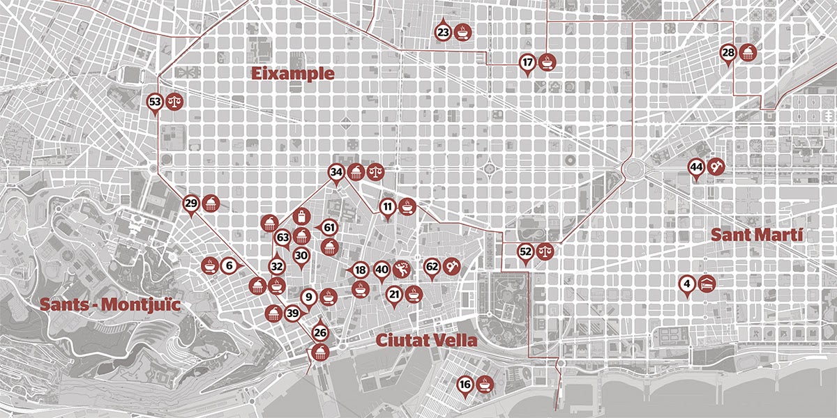 El mapa (Sobre)viure al carrer a Barcelona evidencia que “s’han perdut recursos” en relació amb l’any passat. És el cas, per exemple, de robers que es gestionen des de parròquies i que de moment no funcionen per falta de voluntariat, però també d’espais més grans que temporalment no tenen servei de dutxa.