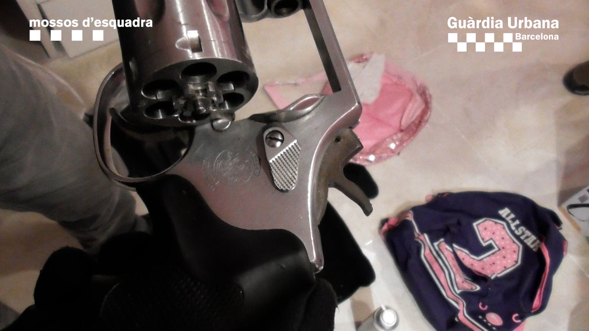 La detenció d’ambdós i escorcoll del pis va tenir lloc aquest dimecres i va proporcionar proves clares del narcotràfic, com estris per tallar l’heroïna, 3.865 euros en bitllets ocults dins d’un mitjó i documentació sobre el flux d’ingressos no declarats. Les dues armes de foc eren amagades als armaris del dormitori de les filles i no se n’ha trobat llicència.