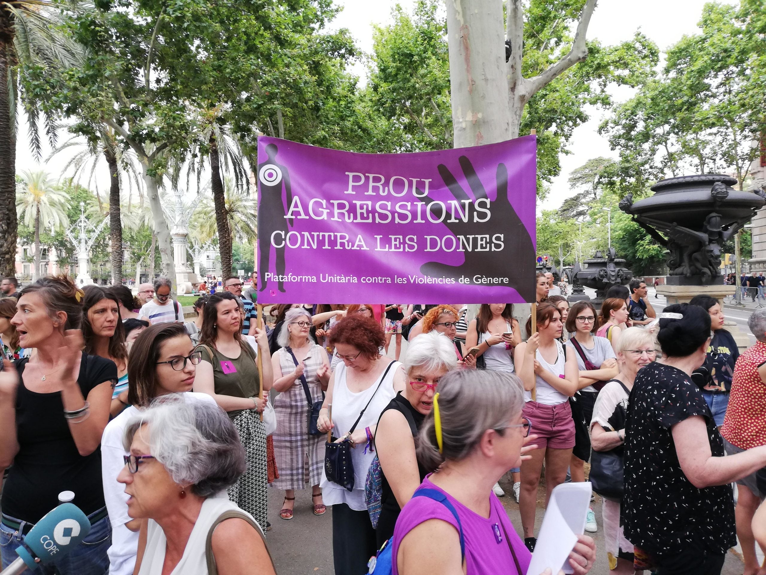 Més d’un centenar de dones i alguns homes s’han concentrat aquest dilluns a la tarda a la plaça Sant Jaume de Barcelona per donar suport a la víctima, menor d’edat, d’una violació múltiple a Manresa fa dos anys, cas que aquests dies s’està jutjant a l’Audiència de Barcelona.