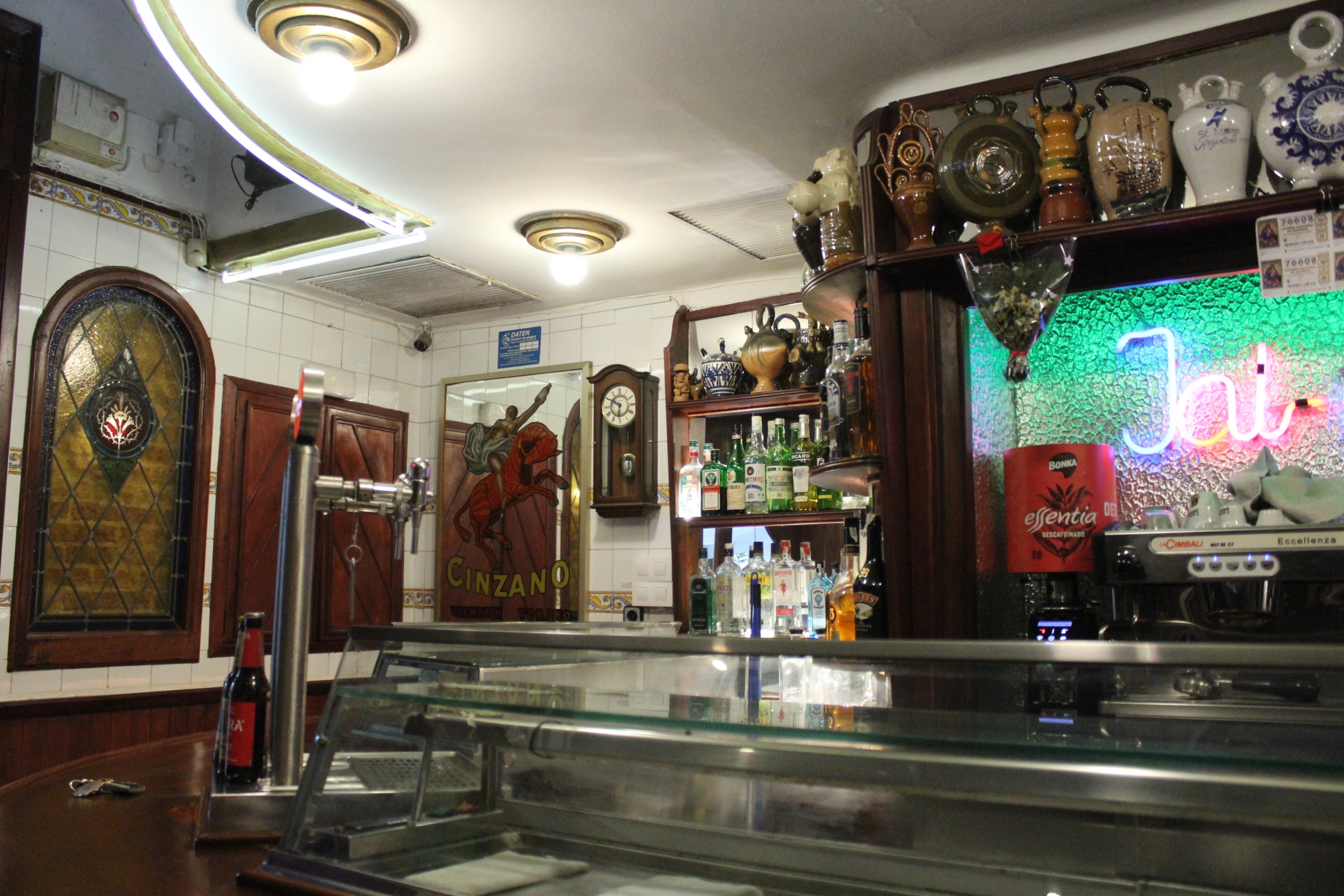 Un altre motiu important per mantenir vius aquesta mena de negocis és que la seva llarga trajectòria els converteix en llocs on els restauradors coneixen els clients i els clients coneixen els restauradors, i tots senten aquests establiments com si fossin casa seva. Prova d’això són els cinc retrats d’homes grans que hi ha al Jai-Ca. Tal com explica Tomillero, són clients “de tota la vida”, que en morir els hi van voler retre homenatge penjant els seus retrats en l’establiment. “També vam penjar les seves gorres”, assenyala a una altra paret, on es veuen sis gorres, entre les quals hi ha una de l’Atlético Club de Madrid i del Barça.