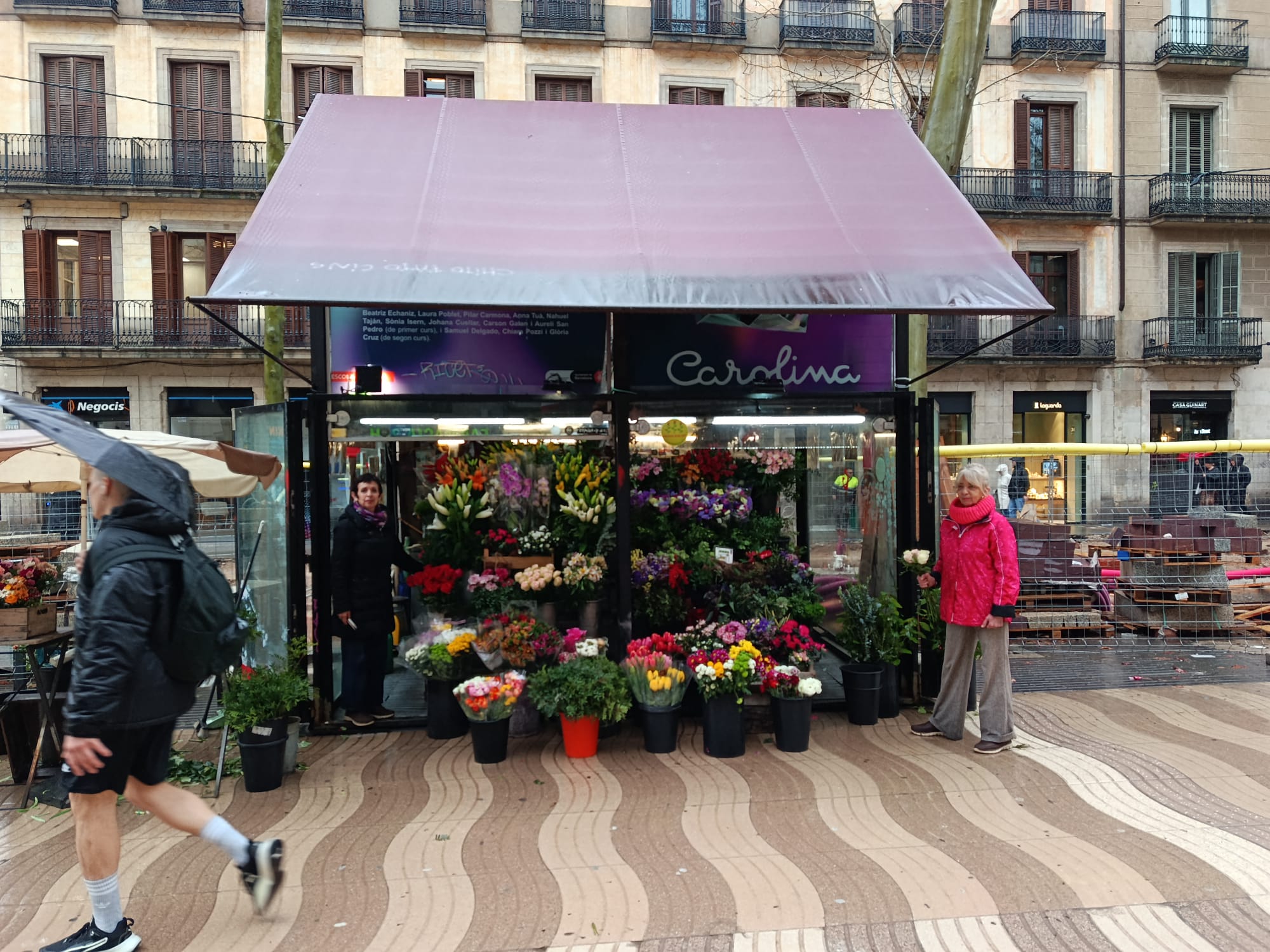 Carolina i altres set floristes estan pendents de traslladar-se temporalment al costat de la plaça de Catalunya, a la vorera de costat Besòs entre els carrers de Bergara i Pelai. Ho havien de fer després de Sant Valentí, però ha passat un mes i continuen a la Rambla, tot i que les noves instal·lacions ja s’han acabat de construir. A la plaça de Catalunya hi seran fins que s’acabin les obres de la Rambla, al voltant d’un any. La intenció de Collboni és tenir enllestida la reforma abans de les eleccions de maig del 2027.