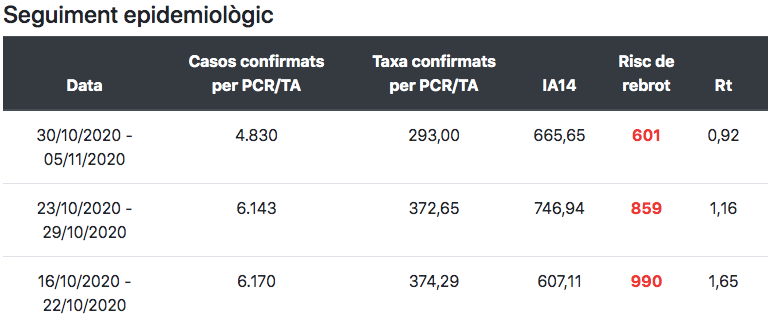 En qualsevol cas, es confirma la tendència apuntada per les autoritats sanitàries, que veuen amb alleujament com la capital catalana ha deixat enrere el “pic de contagis” i ara pot centrar tots els seus esforços a evitar el desbordament dels hospitals. El risc de rebrot a Barcelona està a 601 punts, 400 menys que fa tot just dues setmanes, i la taxa de contagi (Rt) es manté per sota de 1 –imprescindible per contenir la pandèmia– per sisè dia consecutiu.