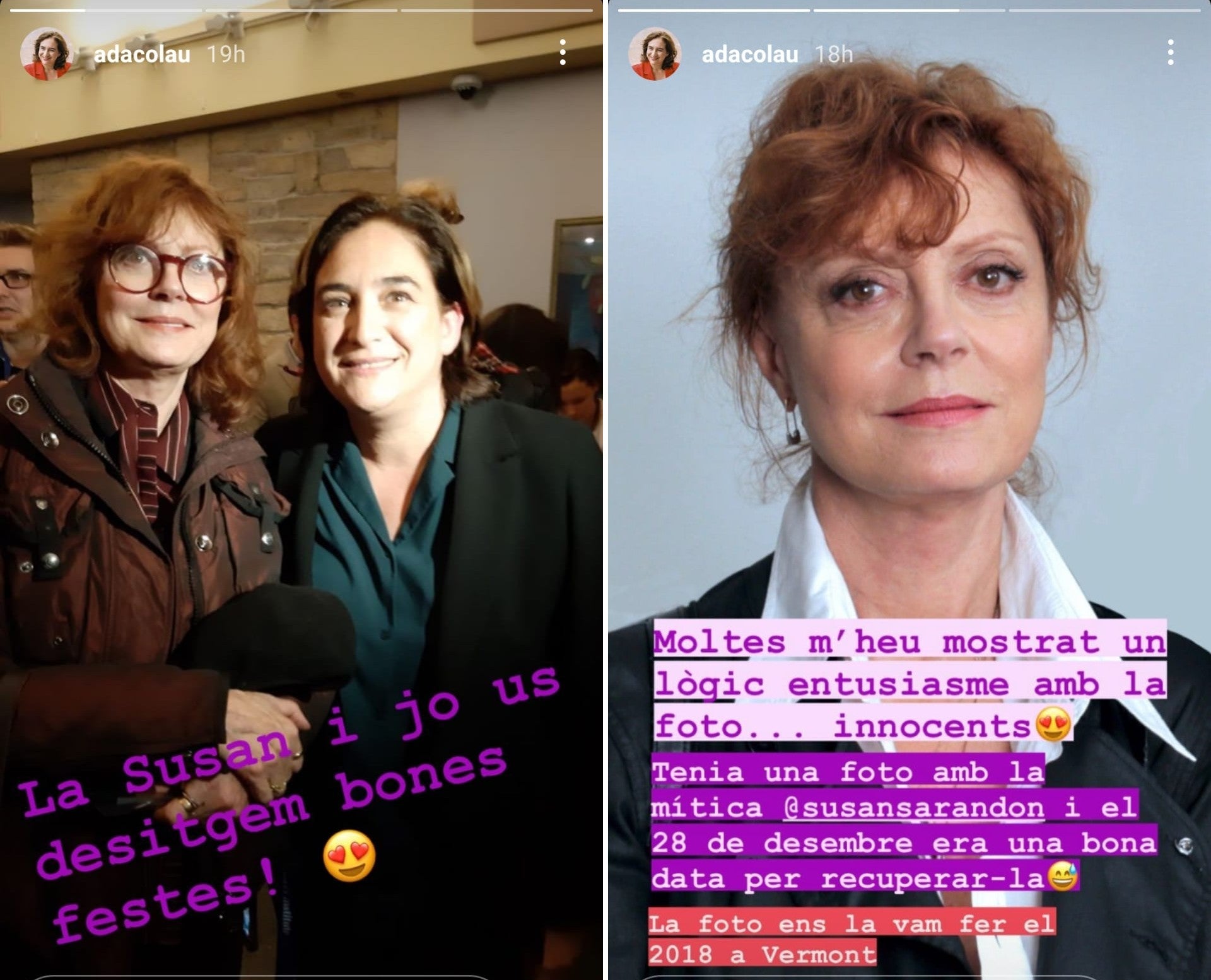 L’alcaldessa de Barcelona, Ada Colau, es va voler sumar a les innocentades del 28 de desembre i va publicar una foto seva amb l’actriu estatunidenca Susan Sarandon en la qual desitjava bones festes a tots els seus seguidors d’Instagram. “La Susan i jo us desitgem bones festes!”, va publicar l’alcaldessa en una story al seu compte personal.